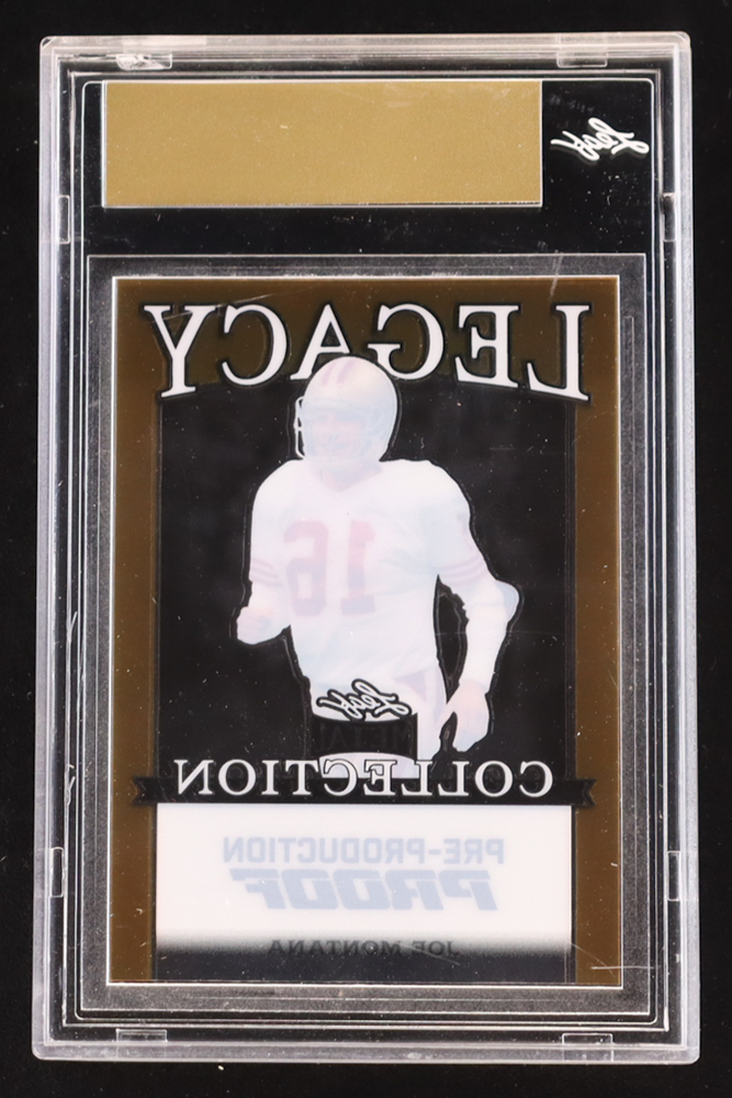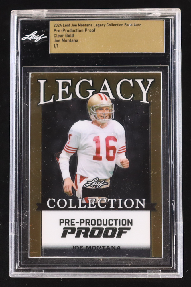 Joe Montana 2024 Leaf Joe Montana Legacy Base Auto Pre-Production Proof Clear Gold #NNO #1/1 (Leaf Encapsulated)