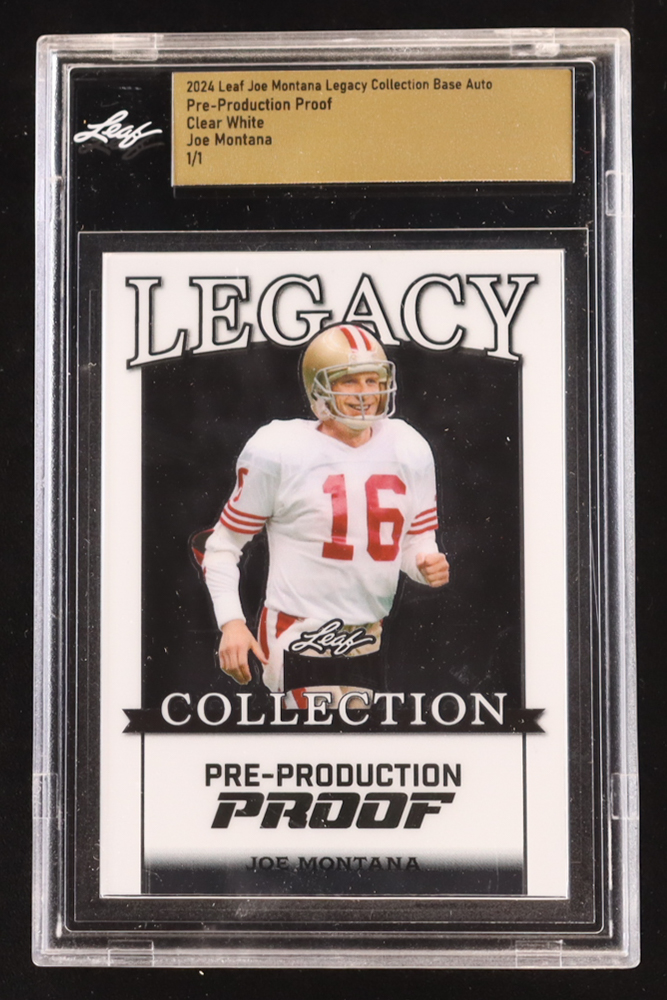 Joe Montana 2024 Leaf Joe Montana Legacy Base Auto Pre-Production Proof Clear White #NNO #1/1 (Leaf Encapsulated)
