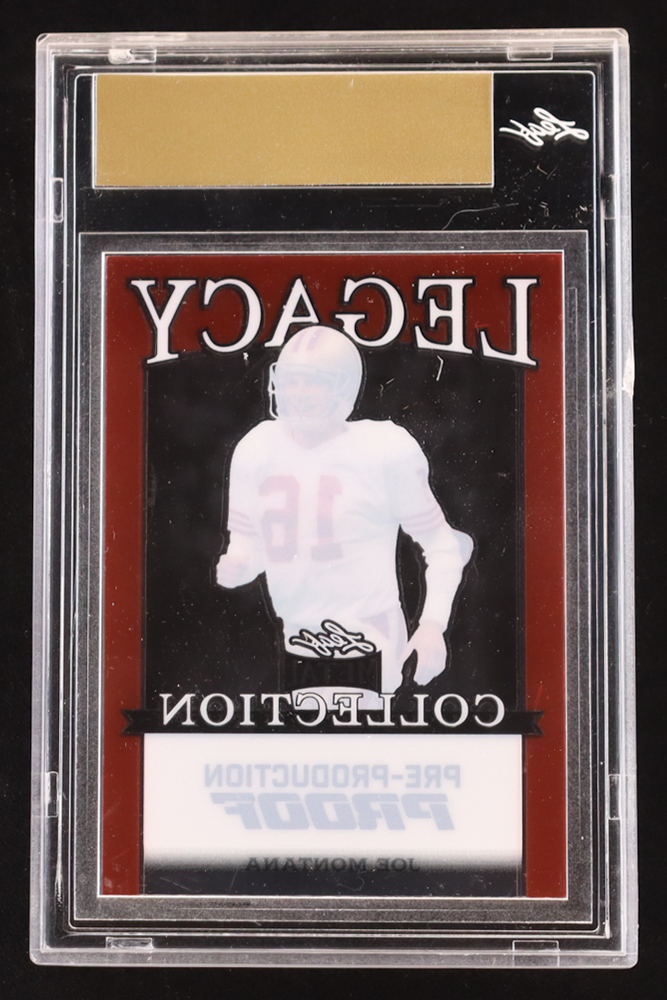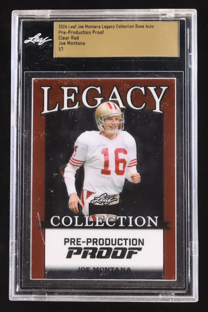 Joe Montana 2024 Leaf Joe Montana Legacy Base Auto Pre-Production Proof Clear Red #NNO #1/1 (Leaf Encapsulated)
