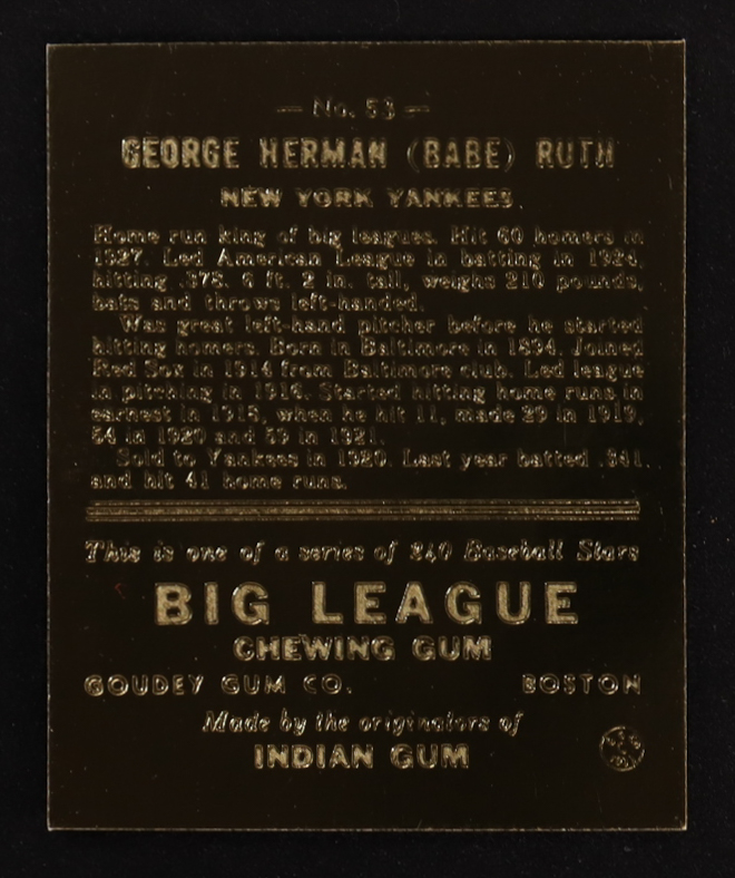 Babe Ruth 1996 Goudey Big League 23KT Gold #53