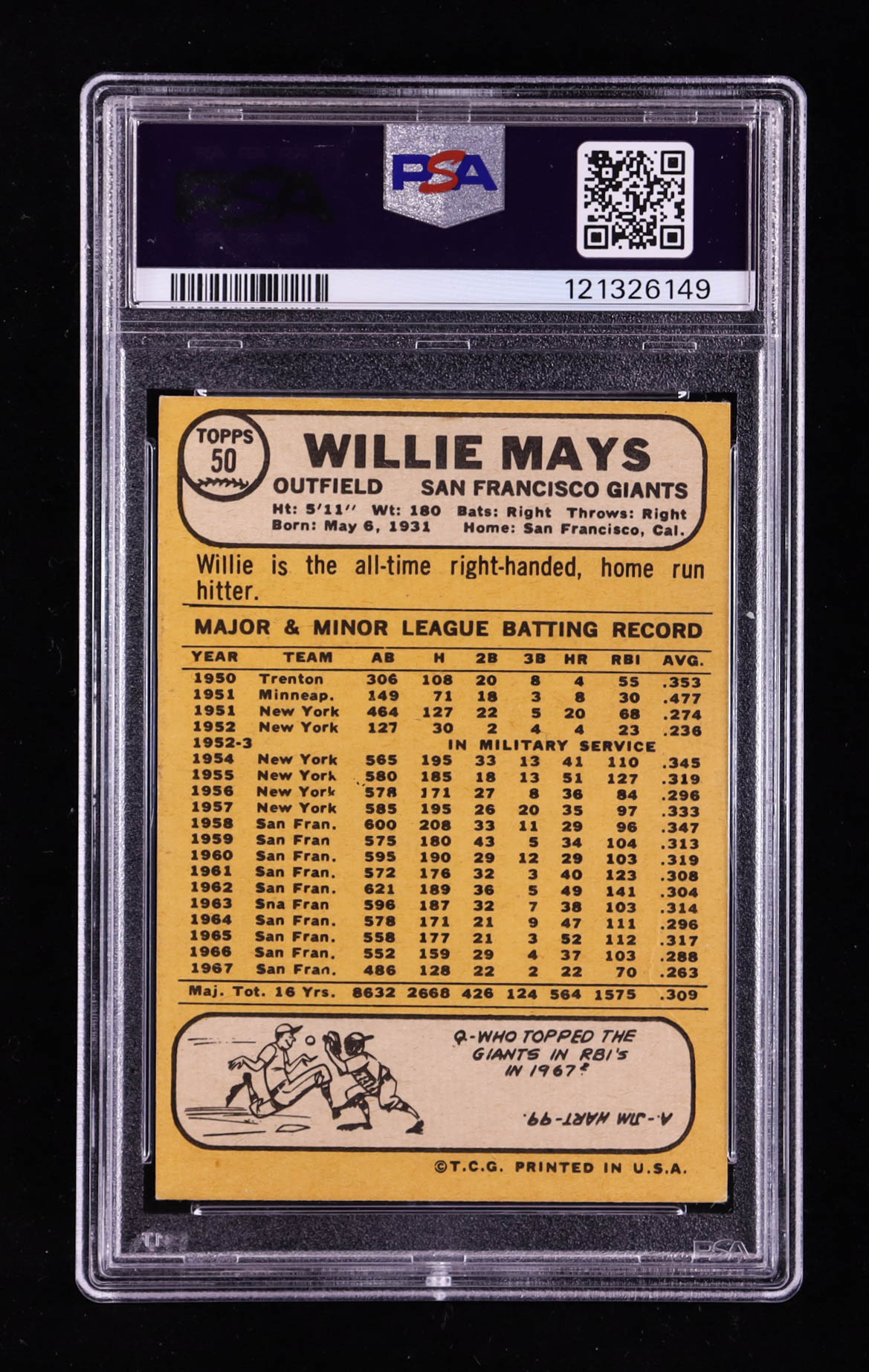 Willie Mays 1968 Topps #50 (PSA 6)