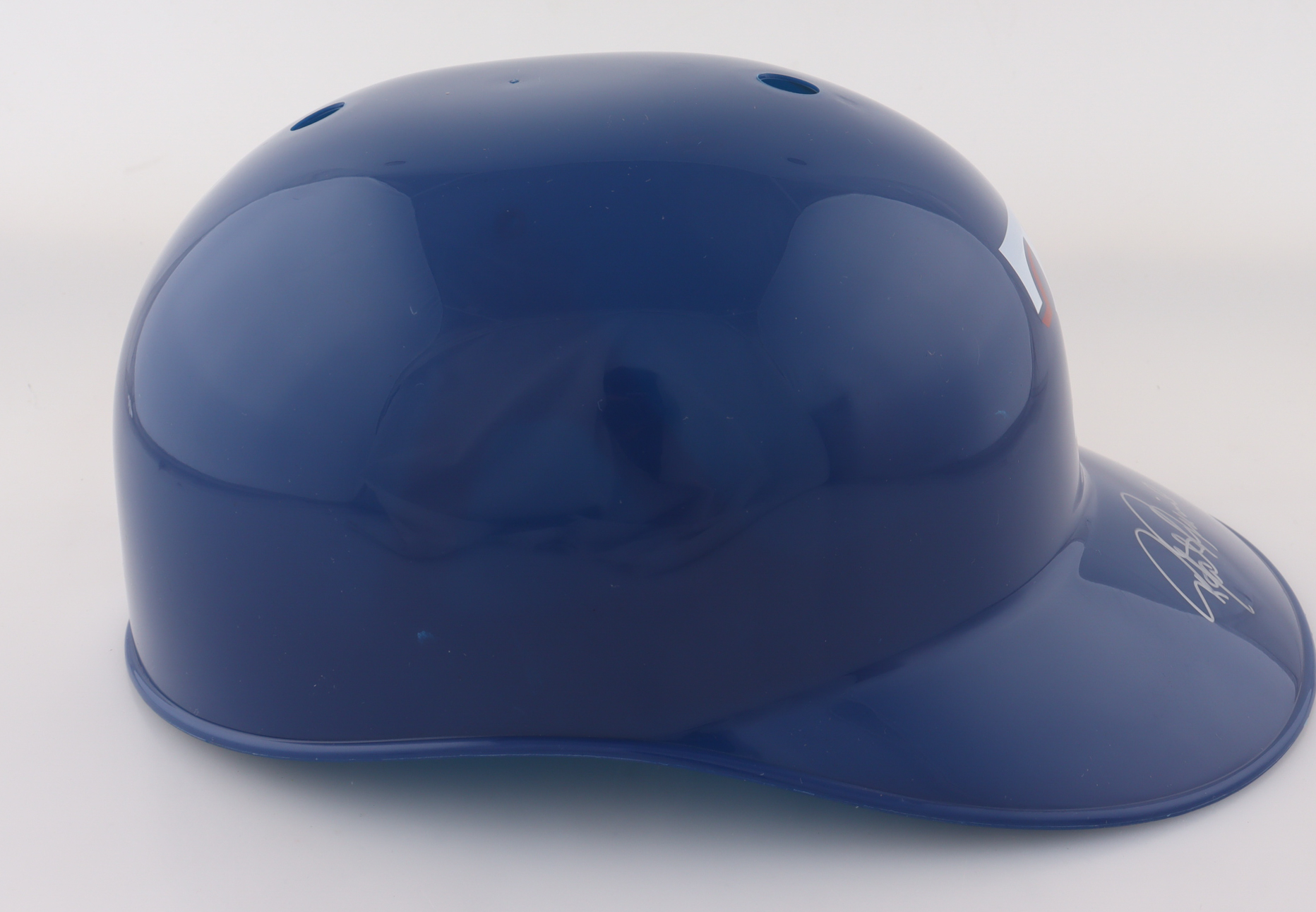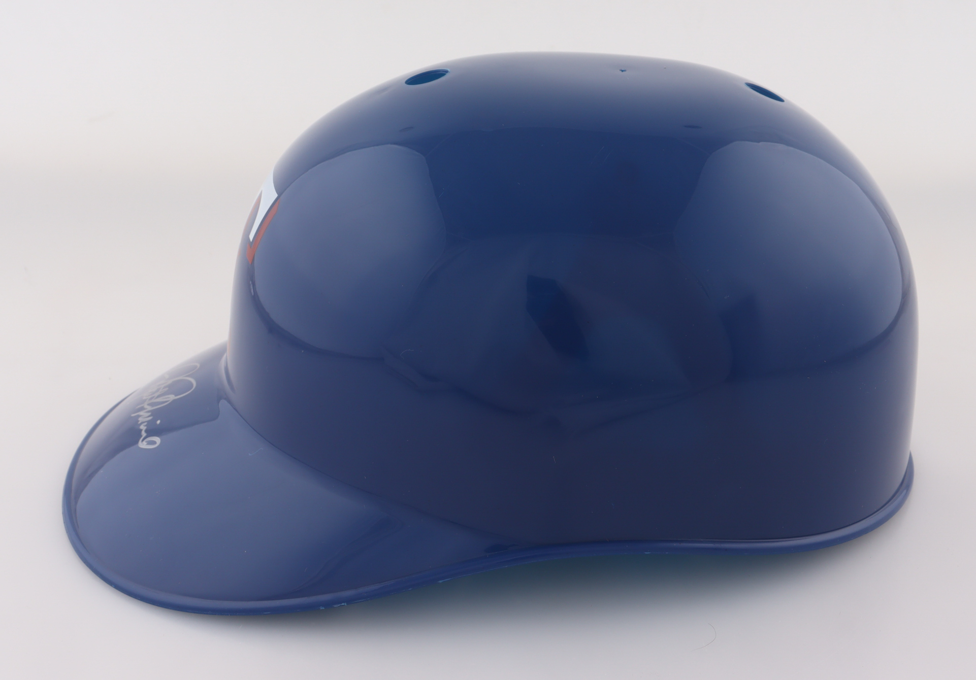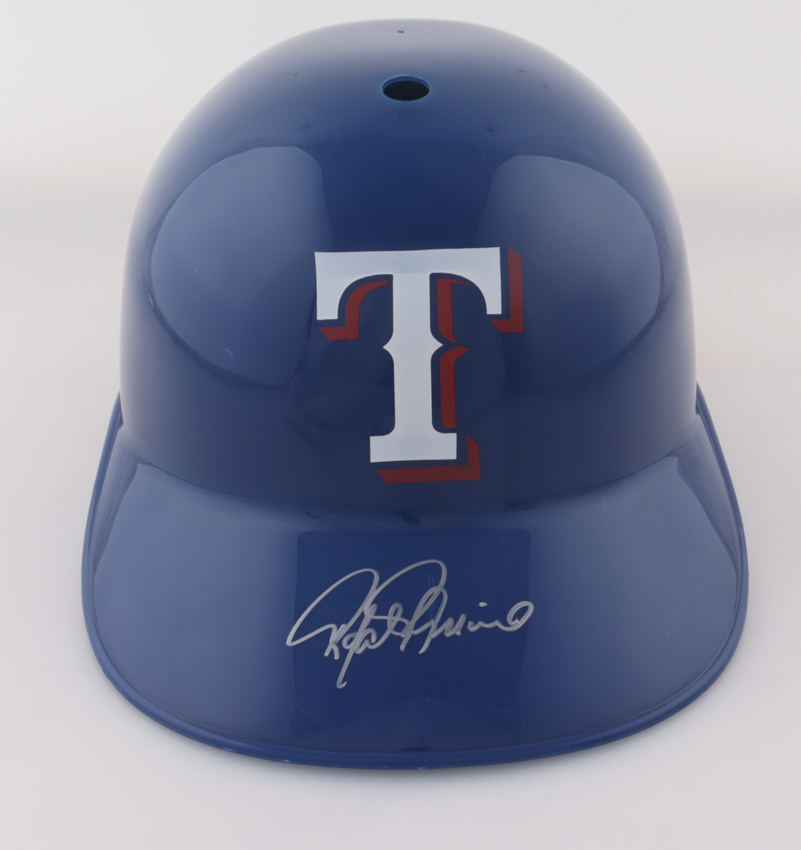 Texas Rangers Full-Size Plastic Souvenir Replica Batting Helmet. Hand-signed by Rafael Palmeiro.