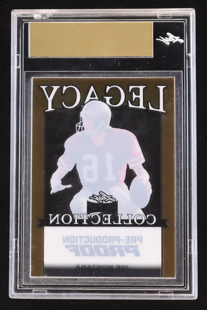 Joe Montana 2024 Leaf Joe Montana Legacy Base Auto Pre-Production Proof Clear Gold #NNO #1/1 (Leaf Encapsulated)