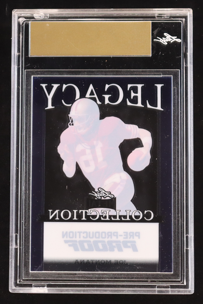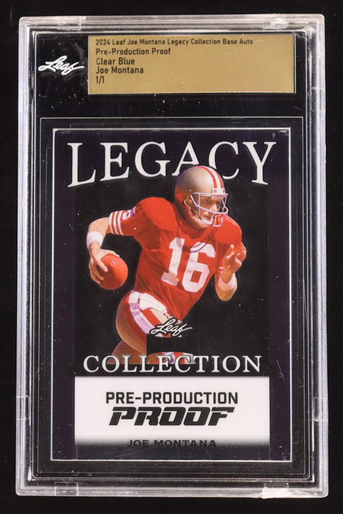 Joe Montana 2024 Leaf Joe Montana Legacy Base Auto Pre-Production Proof Clear Blue #NNO #1/1 (Leaf Encapsulated)