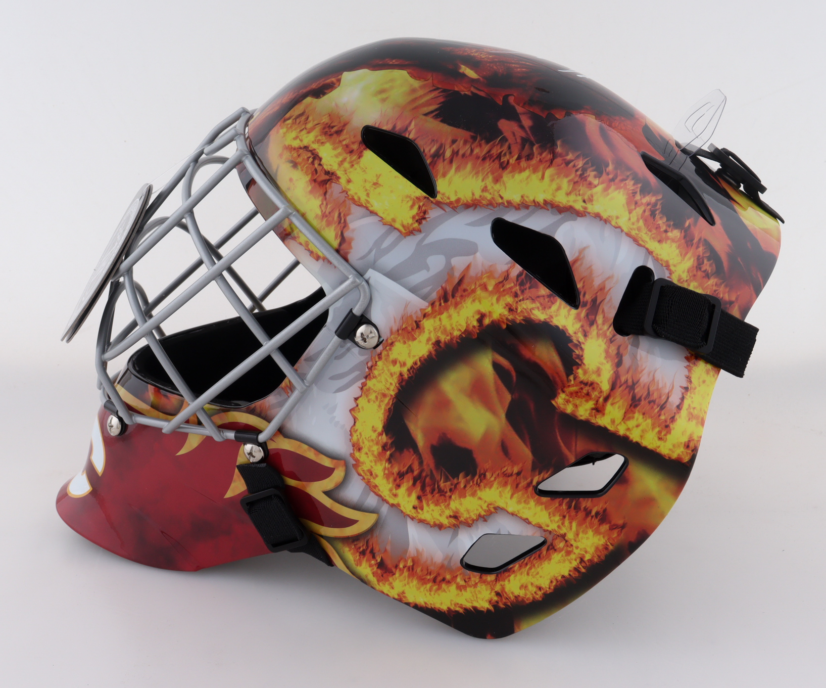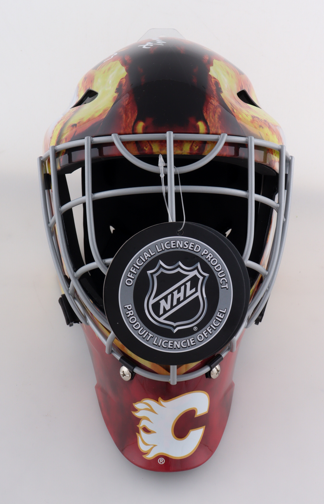 Franklin Calgary Flames Full-Size Replica Goalie Mask. Hand-signed and inscribed by Mike Vernon (HOF).