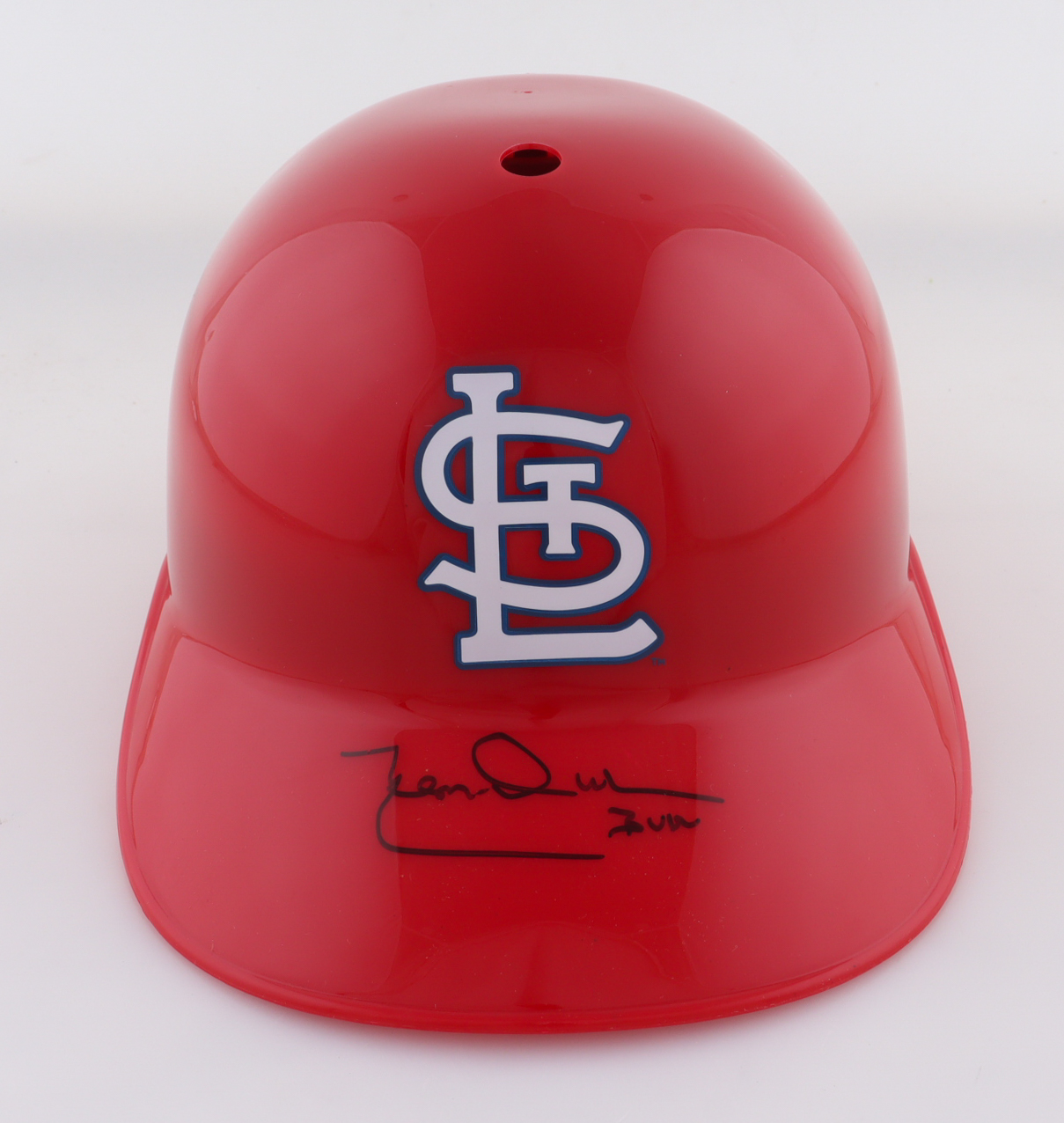 St. Louis Cardinals Full-Size Plastic Souvenir Replica Batting Helmet. Hand-signed and inscribed by Leon Durham.