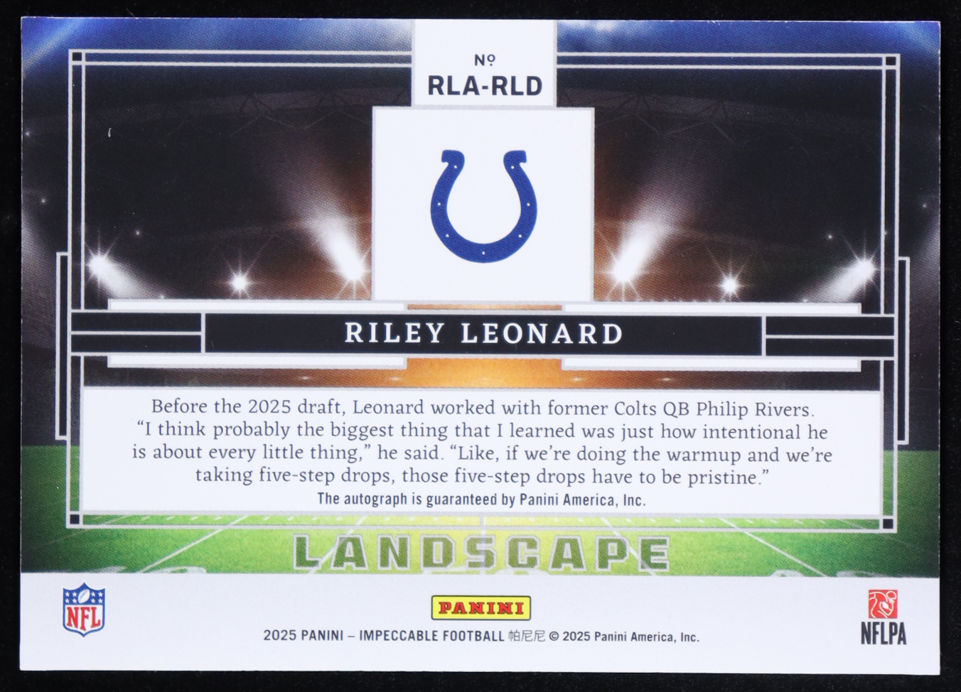 Riley Leonard 2025 Panini Impeccable Rookie Landscape Autographs #4 #46/99 RC