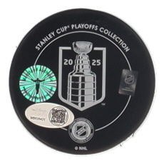 Florida Panthers 2025 Stanley Cup Champions Logo Hockey Puck. Hand-signed by Bradley Marchand.
