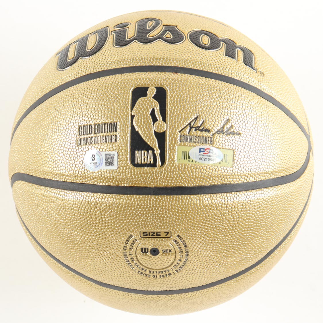 Larry Bird & Magic Johnson Signed NBA Gold Edition Basketball with Display Case (Beckett & PSA)