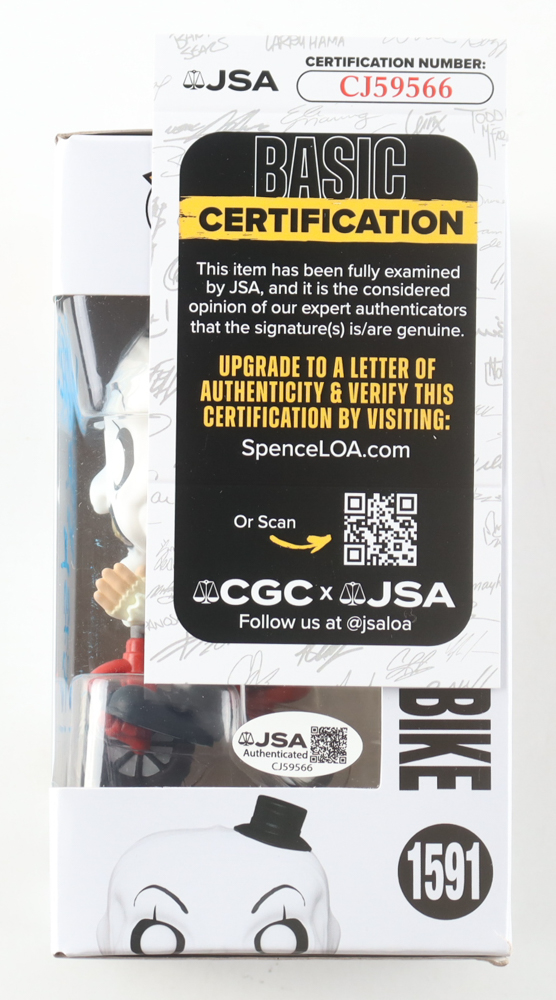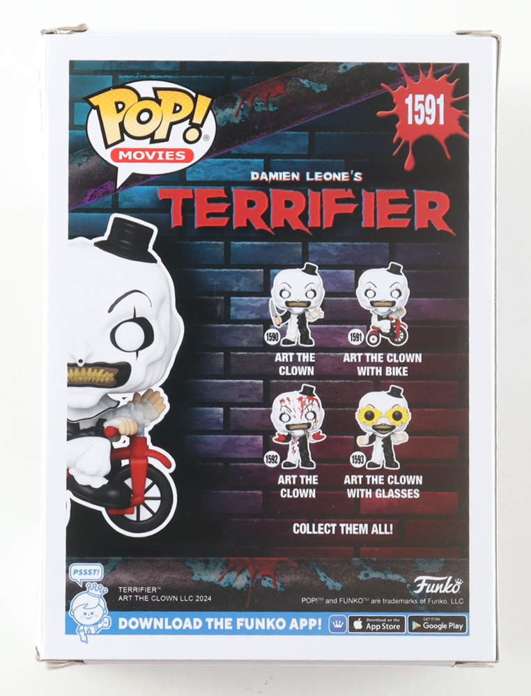 David Howard Thornton Signed "Terrifier" #1591 Art The Clown With Bike Funko Pop! Vinyl Figure Inscribed "Art The Clown" (JSA)