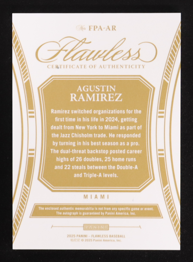 Agustin Ramirez 2025 Panini Flawless Flawless Patch Autographs Sapphire #35 #05/15