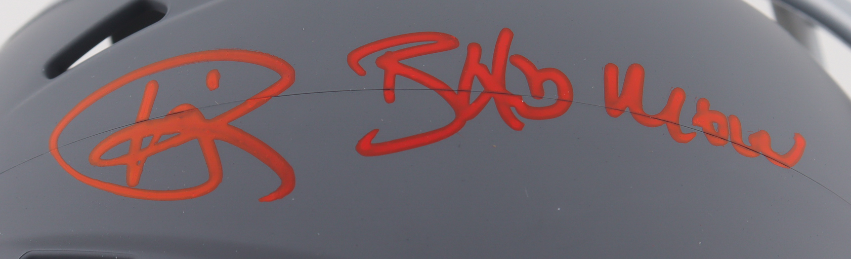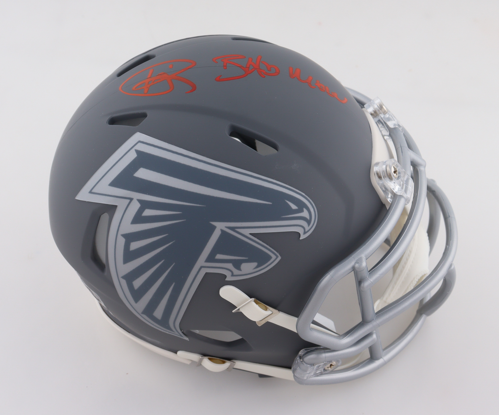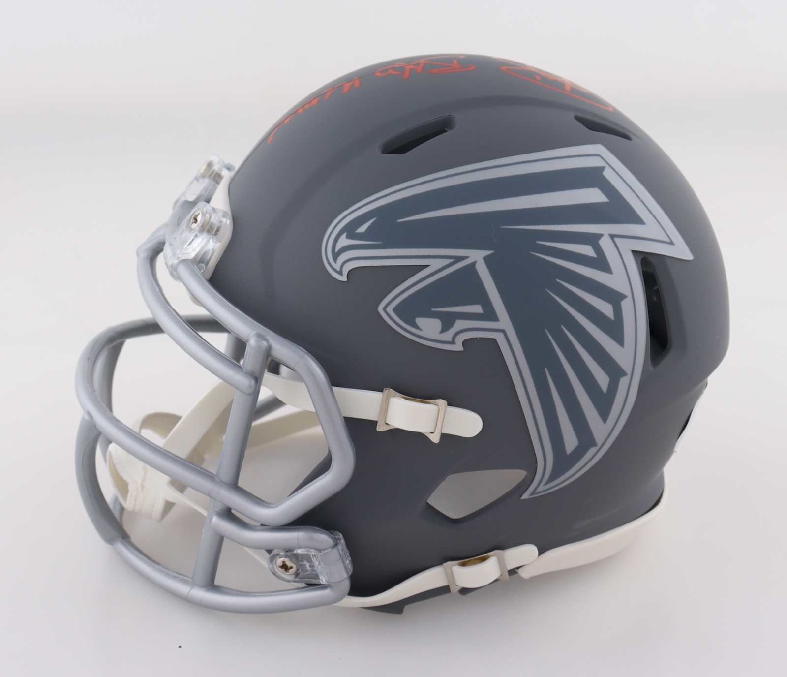 Riddell Atlanta Falcons Slate Alternate Speed Mini Helmet. Hand-signed and inscribed by Andre Rison.