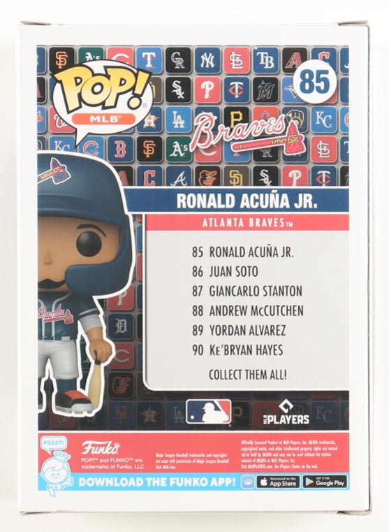 Vinyl figure measures approximately 4" tall and has been hand-signed on the packaging by Ronald Acuna Jr. (Atlanta Braves). Please note the window has been swapped.