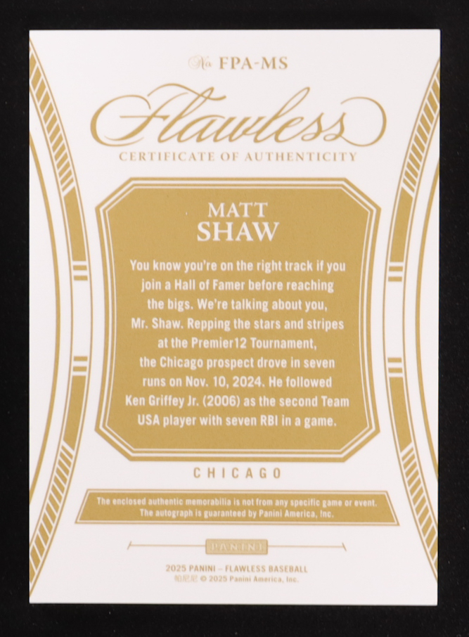 Matt Shaw 2025 Panini Flawless Flawless Patch Autographs Sapphire #21 #12/15