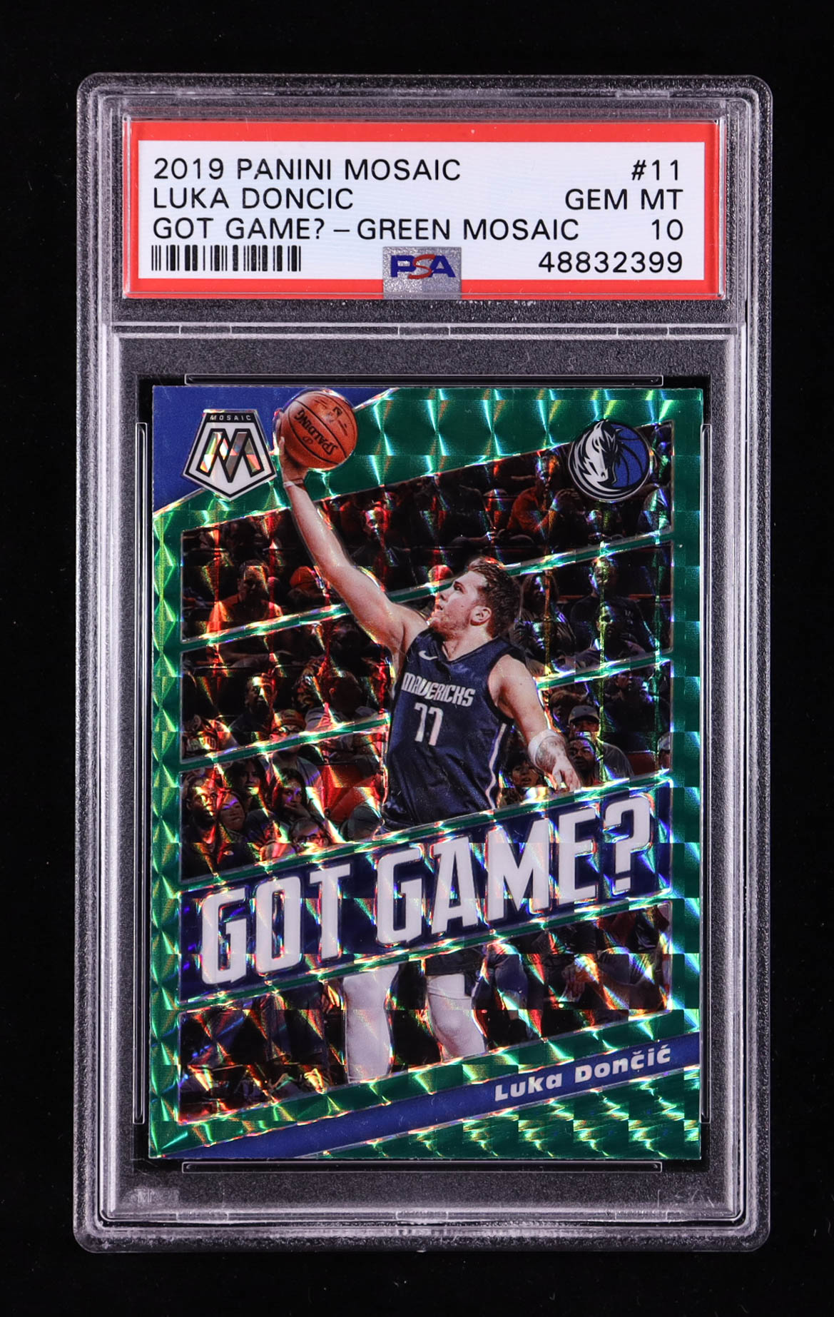 Luka Doncic 2019-20 Panini Mosaic Got Game? Mosaic Green #11 (PSA 10)