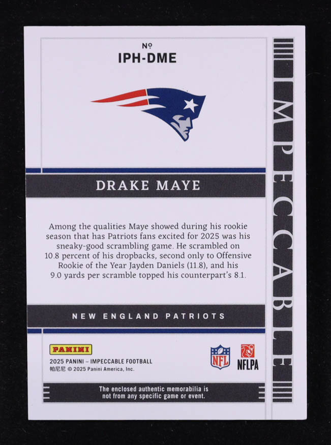 Drake Maye 2025 Panini Impeccable Immense Patches #16 #13/49