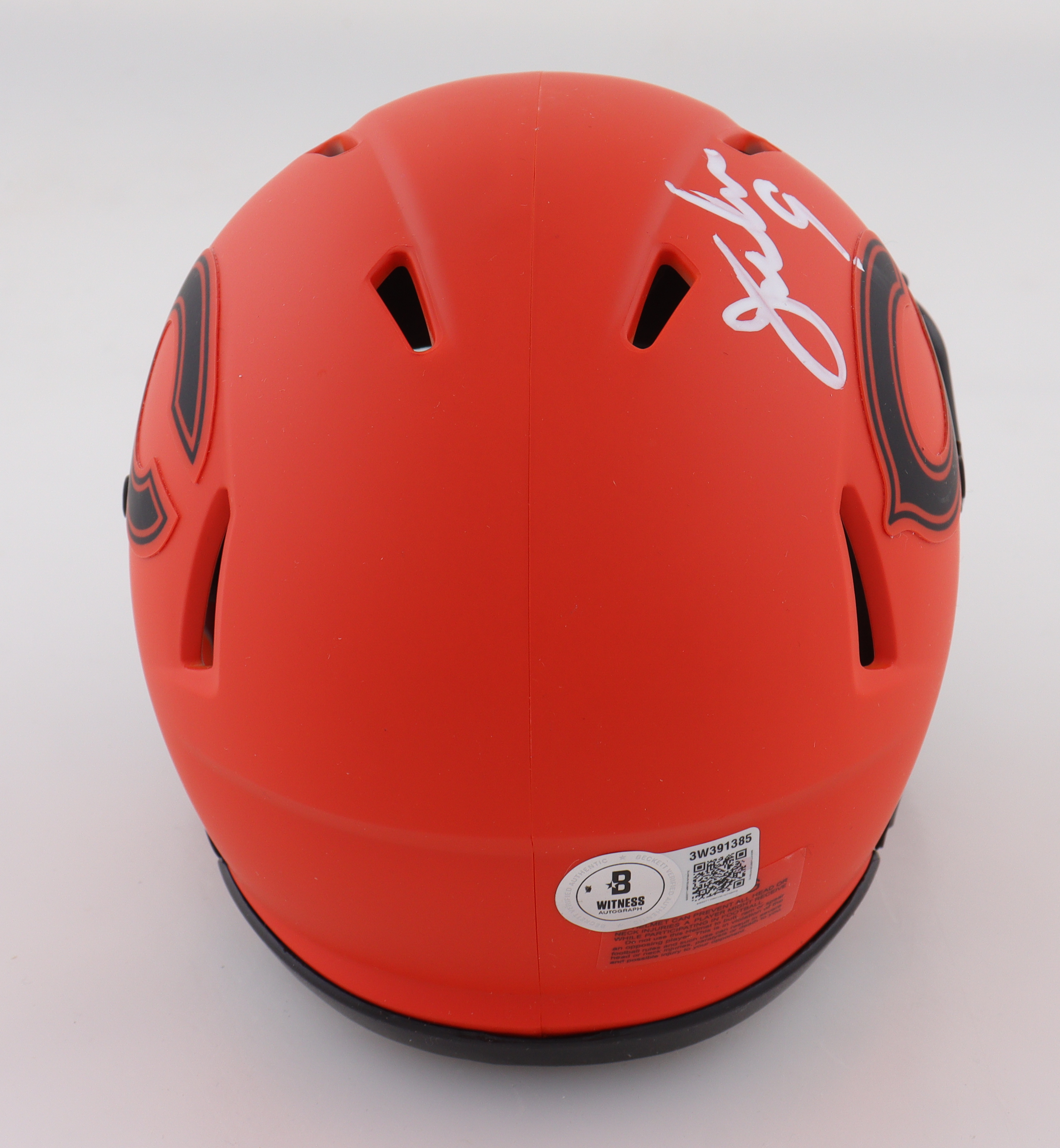 Riddell Chicago Bears Rave Alternate Speed Mini Helmet. Hand-signed by Jim McMahon. Please note, there is a scratch on top of the helmet.