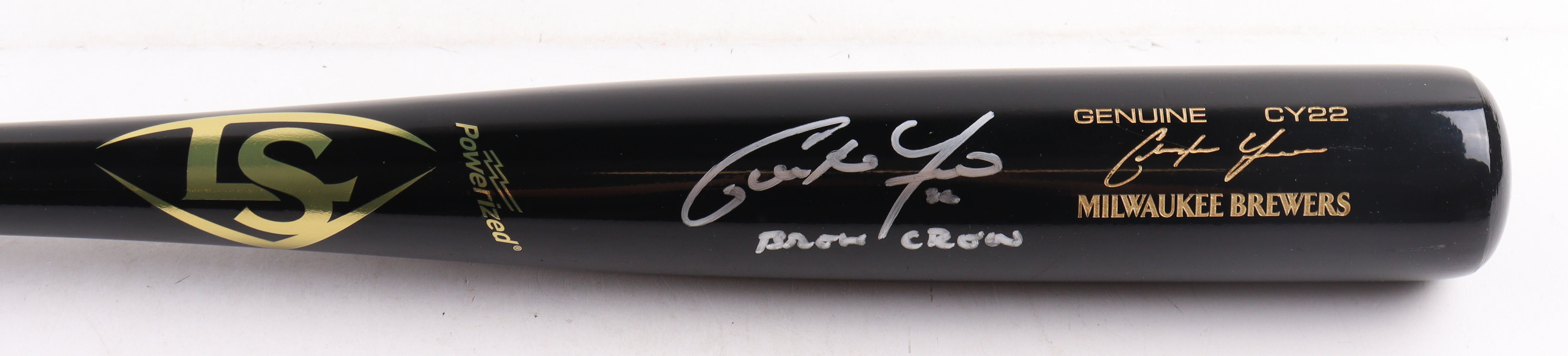 Louisville Slugger Player Model baseball bat has been hand-signed by Christian Yelich (Milwaukee Brewers).