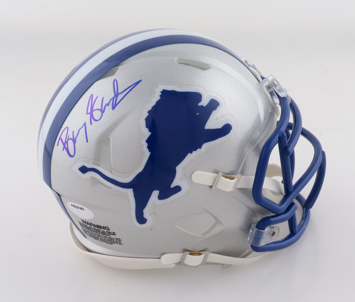 Riddell Detroit Lions Throwback Alternate Speed Mini Helmet. Hand-signed by Barry Sanders (HOF).