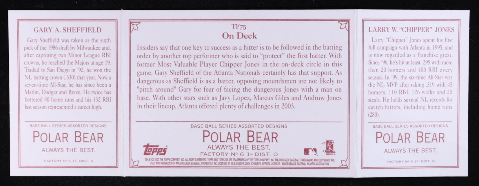 Chipper Jones / Gary Sheffield 2003 Topps 205 Triple Folder Polar Bear #TF75