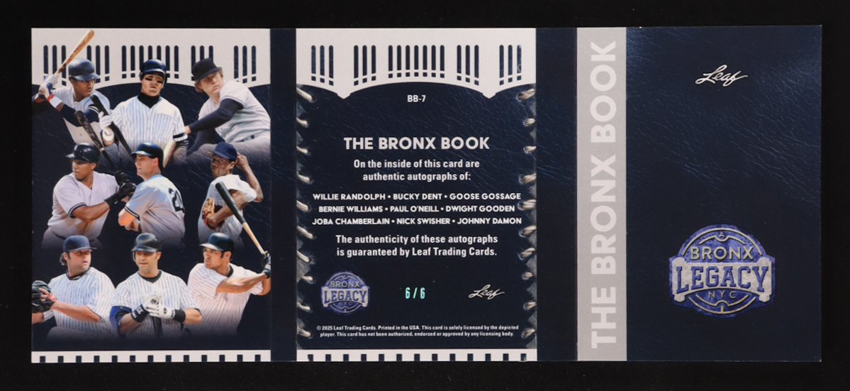 2025 Leaf A Bronx Legacy The Bronx Autograph Book Spectrum Platinum Holofoil #BB7 #6/6 Willie Randolph / Bucky Dent / Goose Gossage / Bernie Williams / Paul O’Neill / Dwight Gooden / Joba Chamberlain / Nick Swisher / Johnny Damon