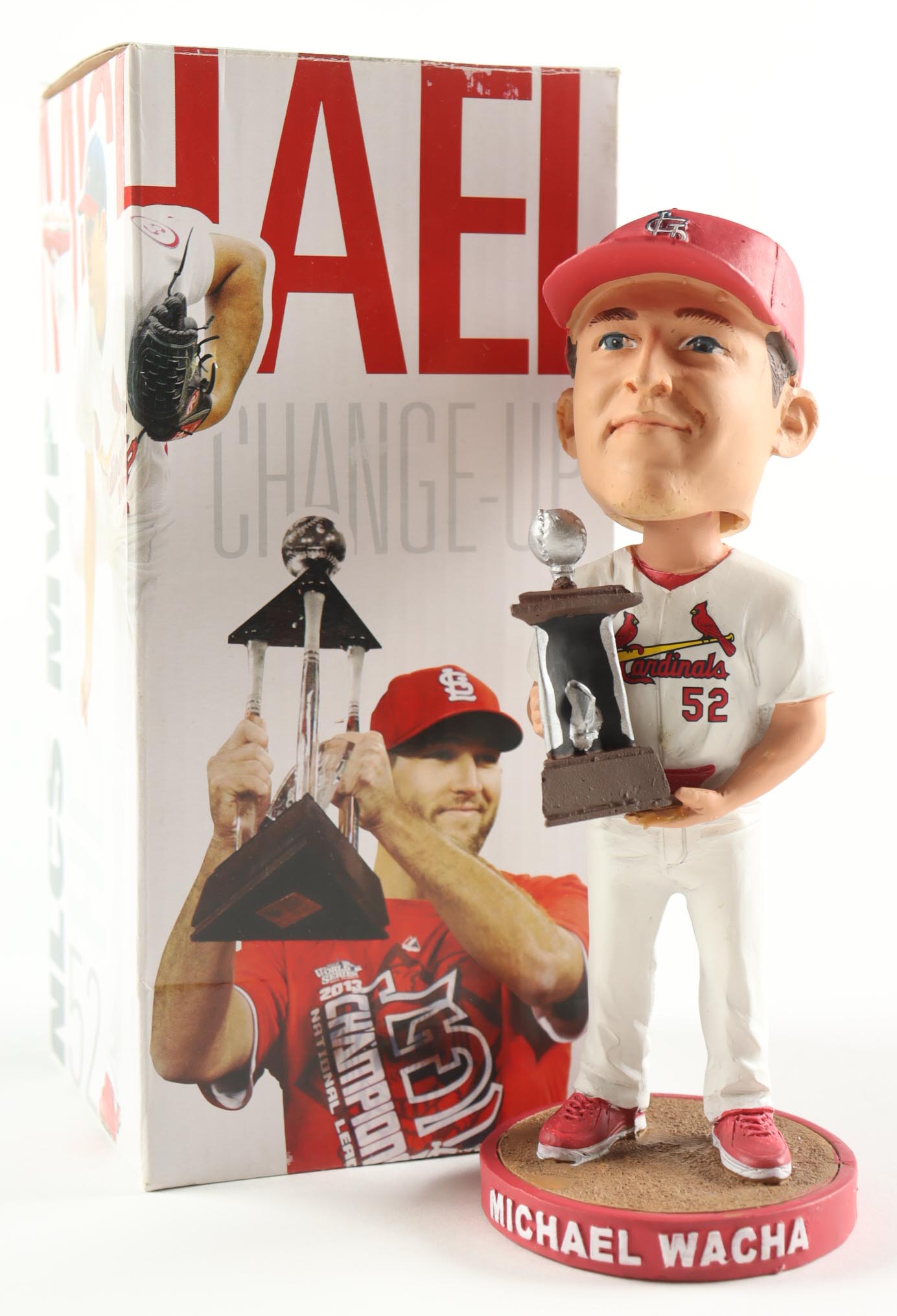 Kloanz Bobblehead measures 7" tall of Michael Wacha (St. Louis Cardinals). Note that the bobblehead is unsigned as well as it does come with the original packaging as shown in the listing above. Please see photos for more details regarding the condition of the item.