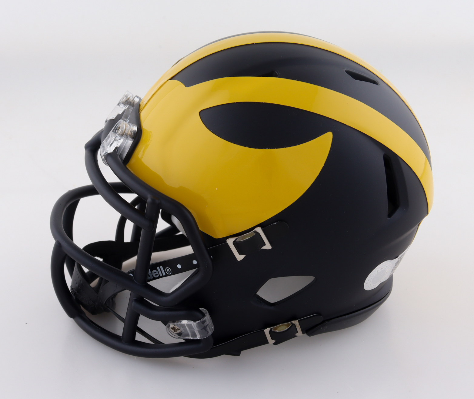 Riddell Michigan Wolverines Speed Mini Helmet. Hand-signed by Jaylen Harrell.