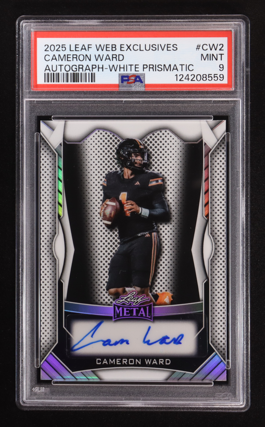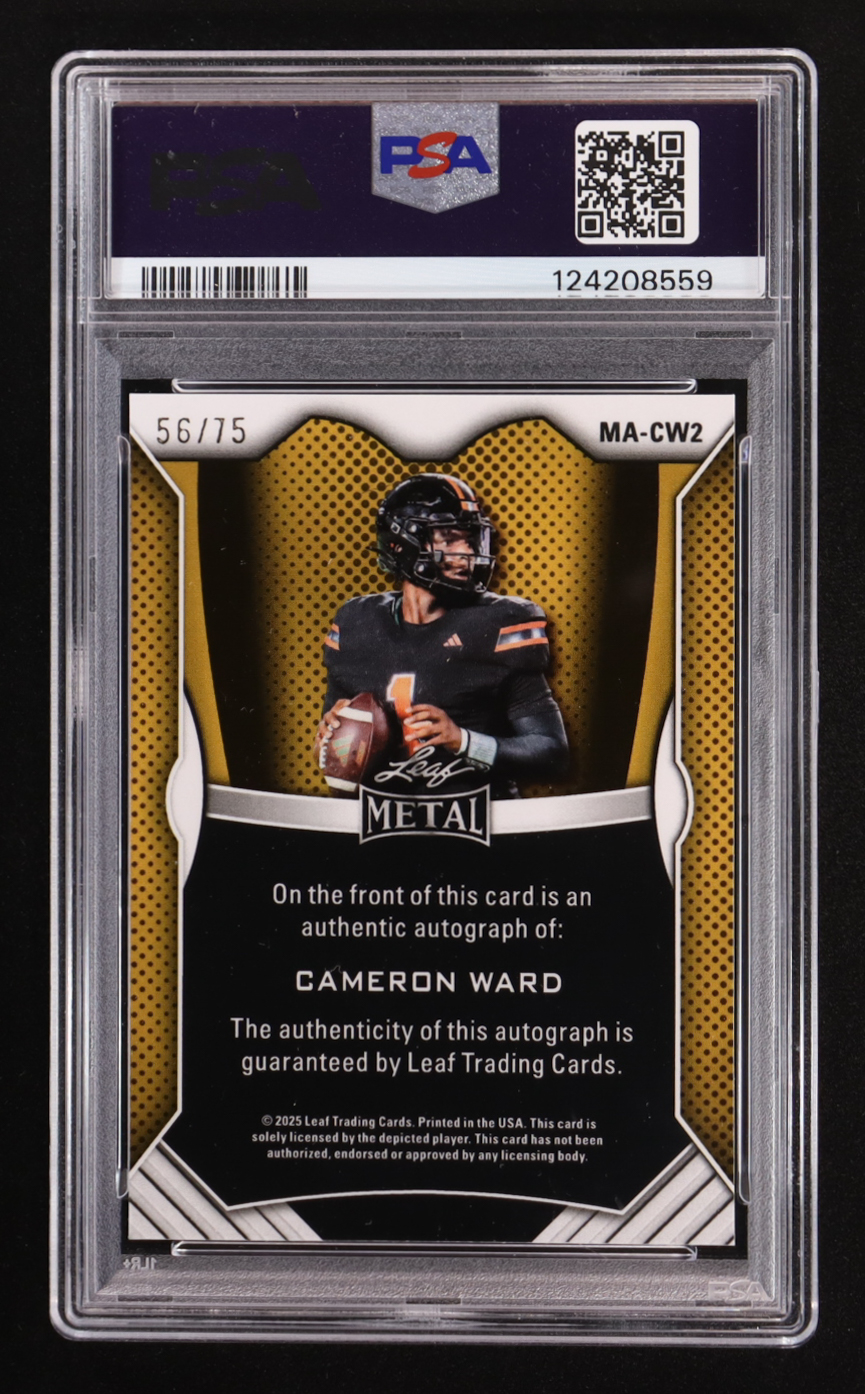 Cam Ward 2025 Leaf Metal Web Exclusives Autographs Prismatic White #MACW2 #56/75 RC (PSA 9)
