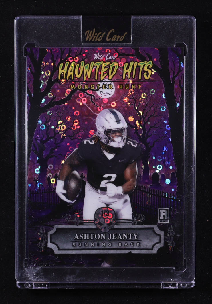 Ashton Jeanty 2025 Wild Card Haunted Hits Monster Hunt Cemetery Purple Disco #AJ RC #1/3