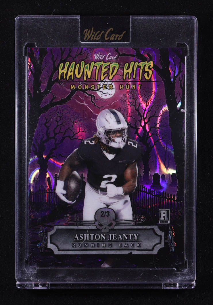 Ashton Jeanty 2025 Wild Card Haunted Hits Monster Hunt Cemetery Purple Lava #AJ RC #2/3