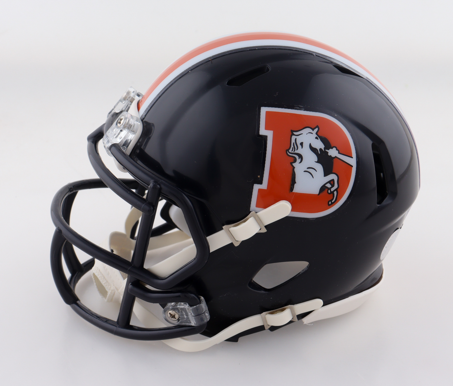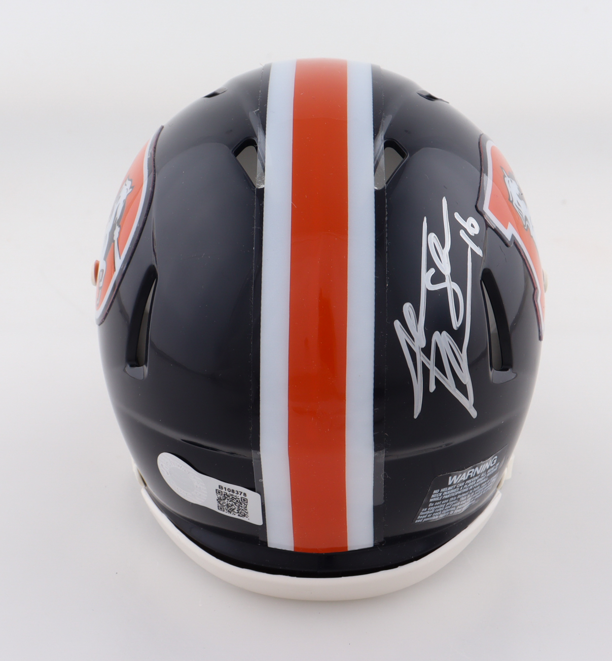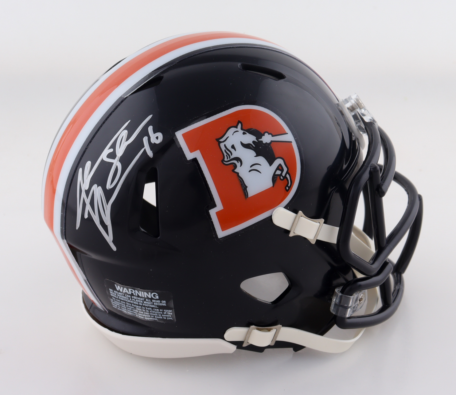Riddell Denver Broncos Color Rush Alternate Speed Mini Helmet. Hand-signed and inscribed by Jake Plummer.