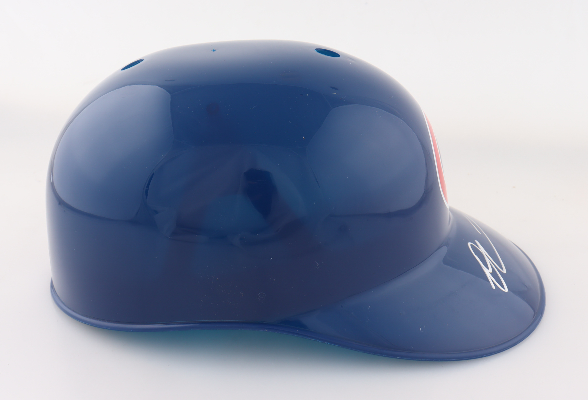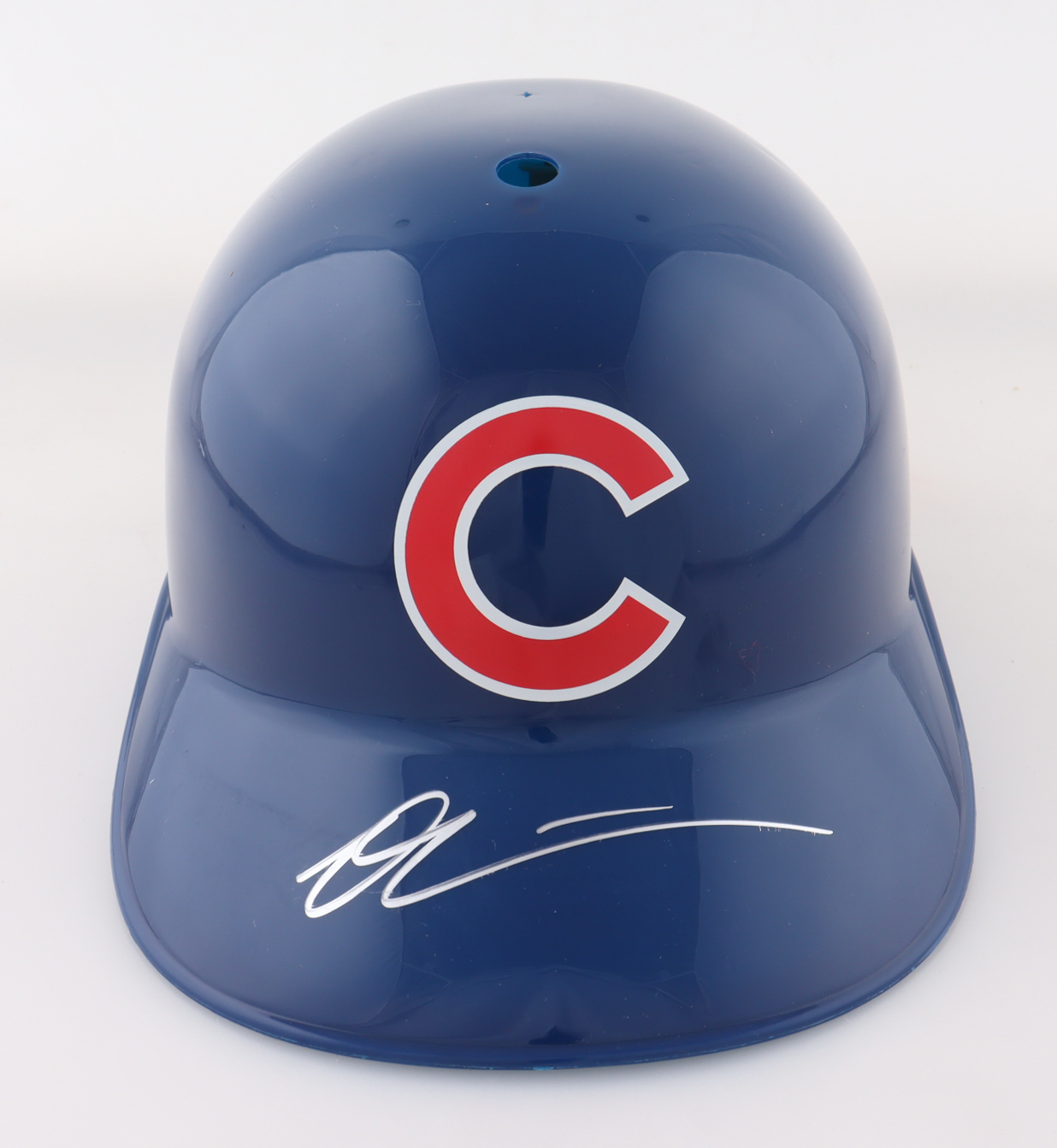 Chicago Cubs full-size replica plastic souvenir batting helmet. Hand-signed by Owen Caissie.