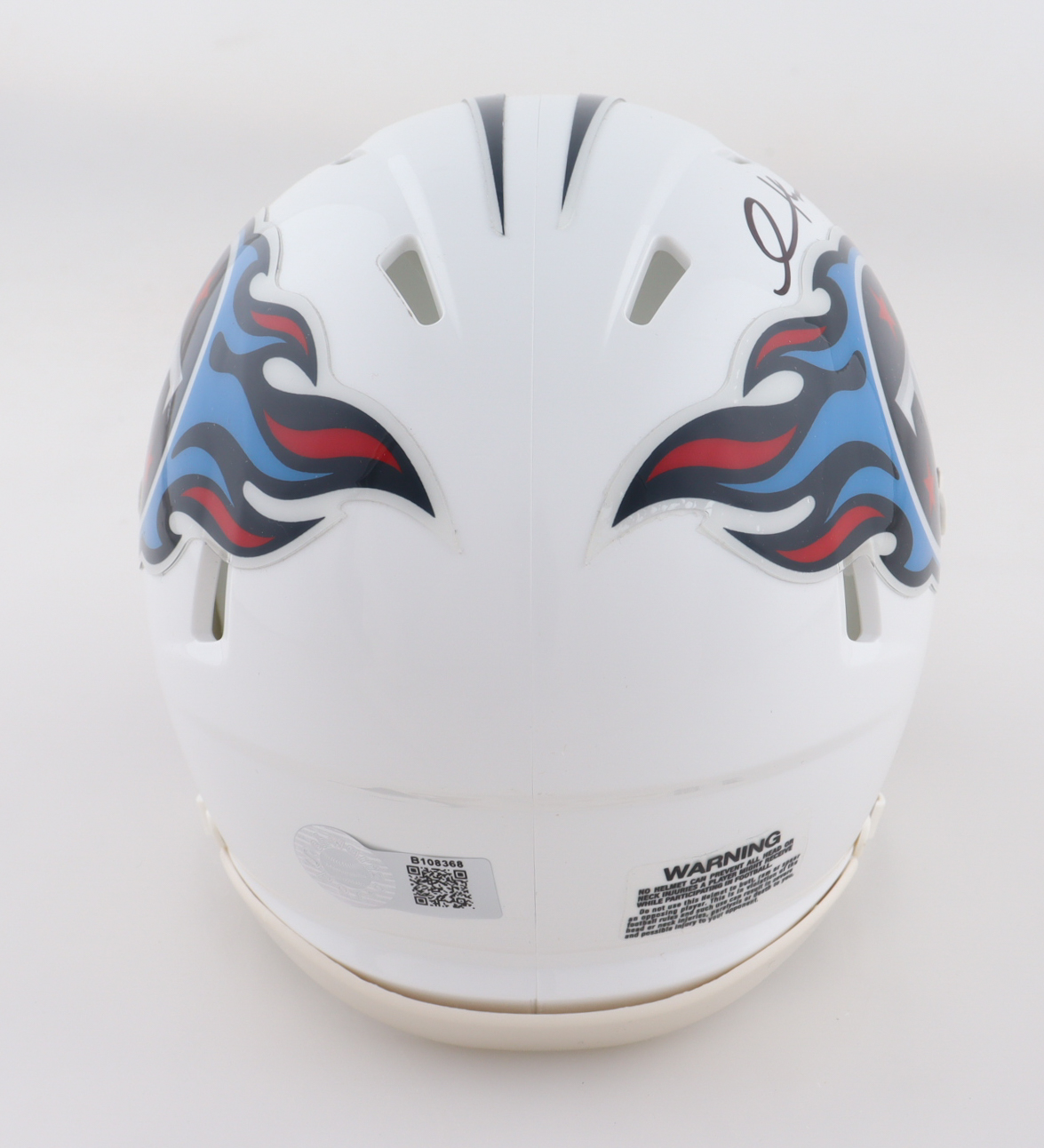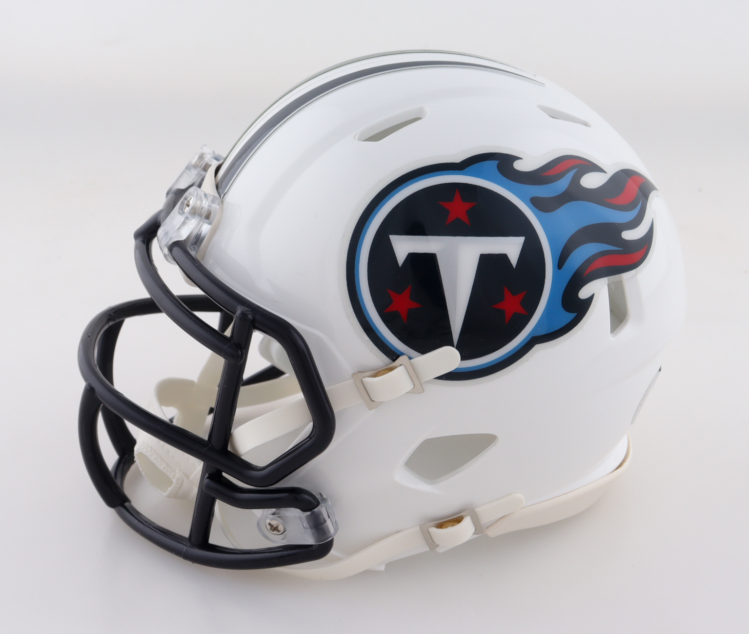 Riddell Tennessee Titans Throwback Alternate Speed Mini Helmet. Hand-signed by Derrick Mason.