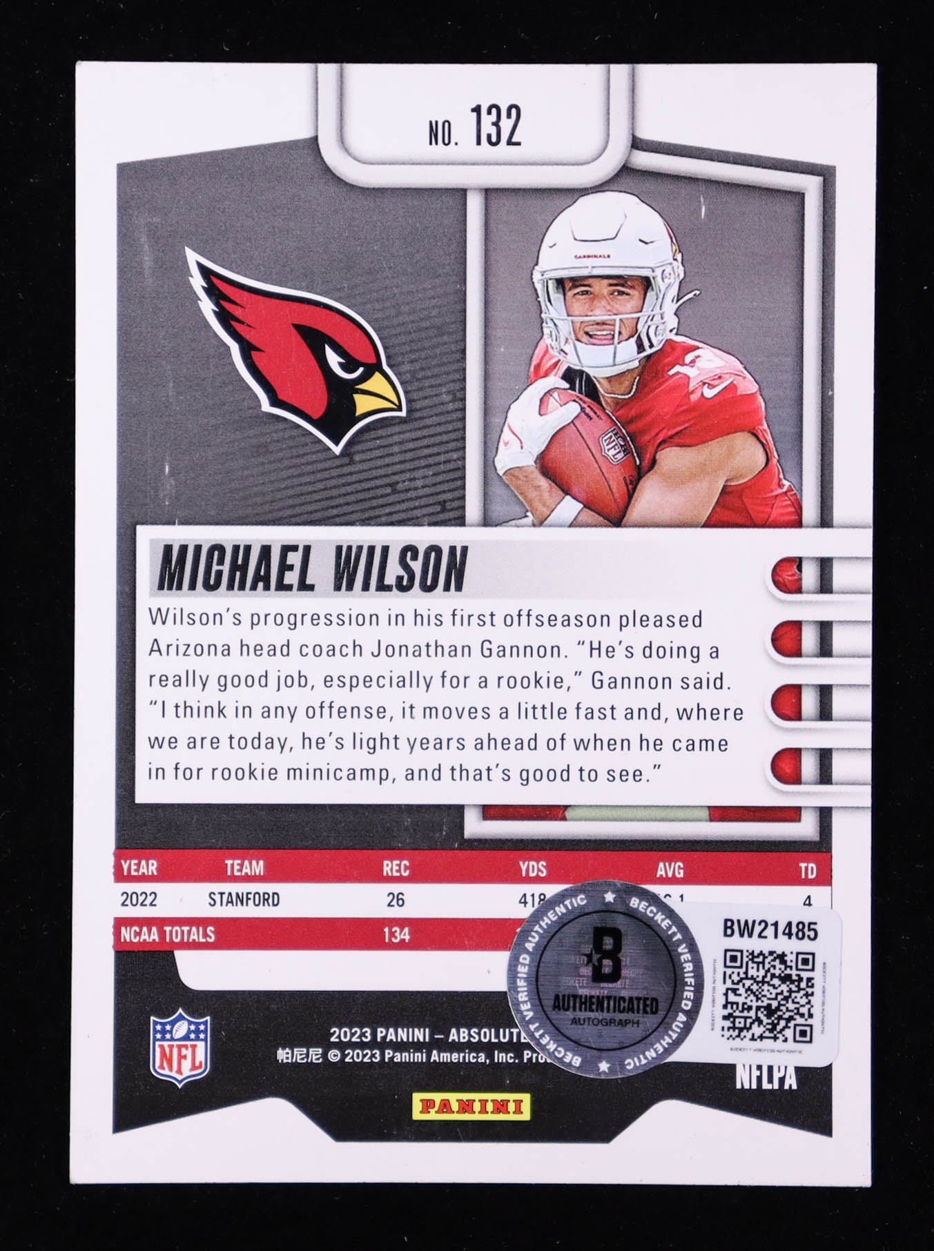 Card has been hand-signed by Michael Wilson (Arizona Cardinals). Please see images for details regarding the condition of the card.
