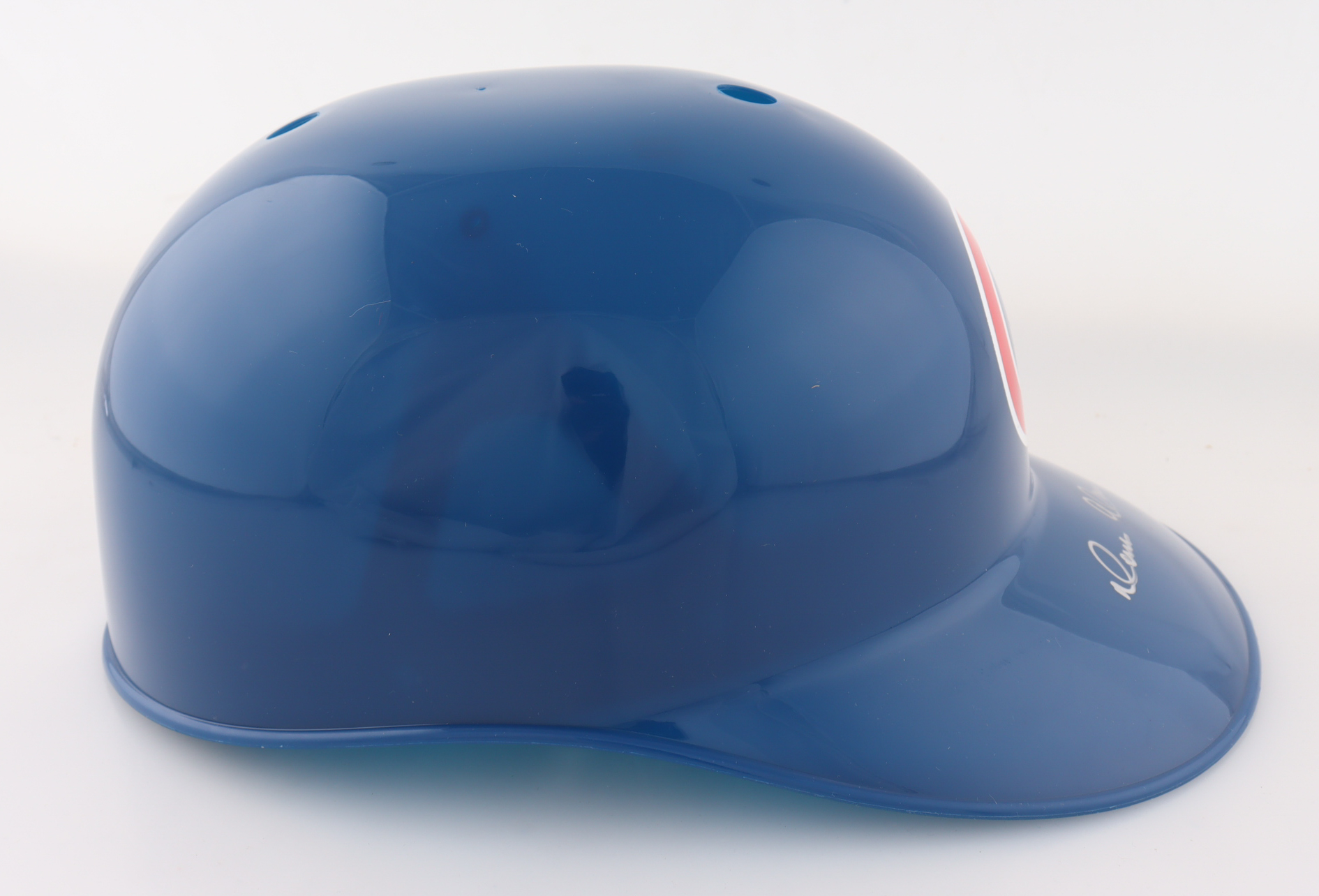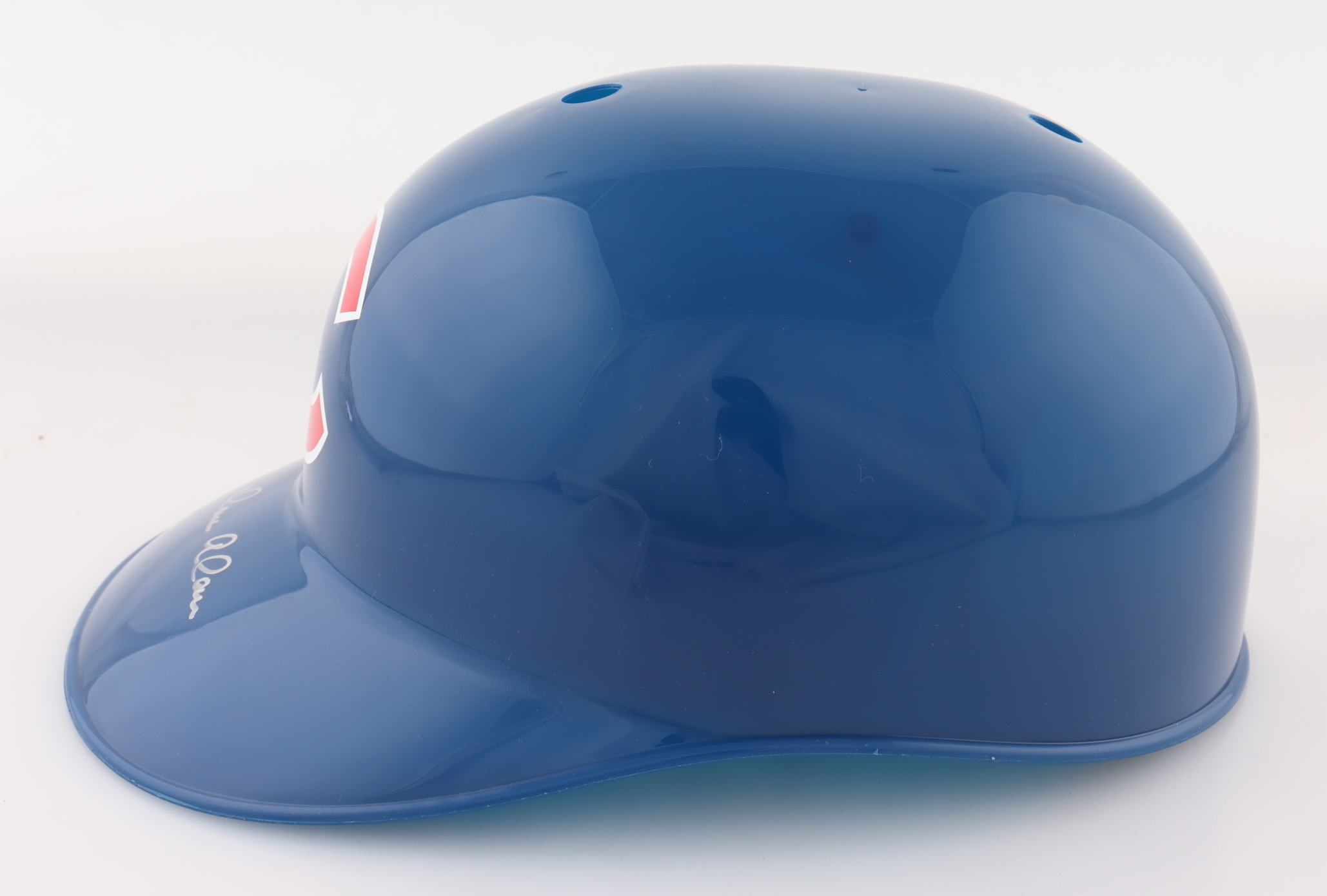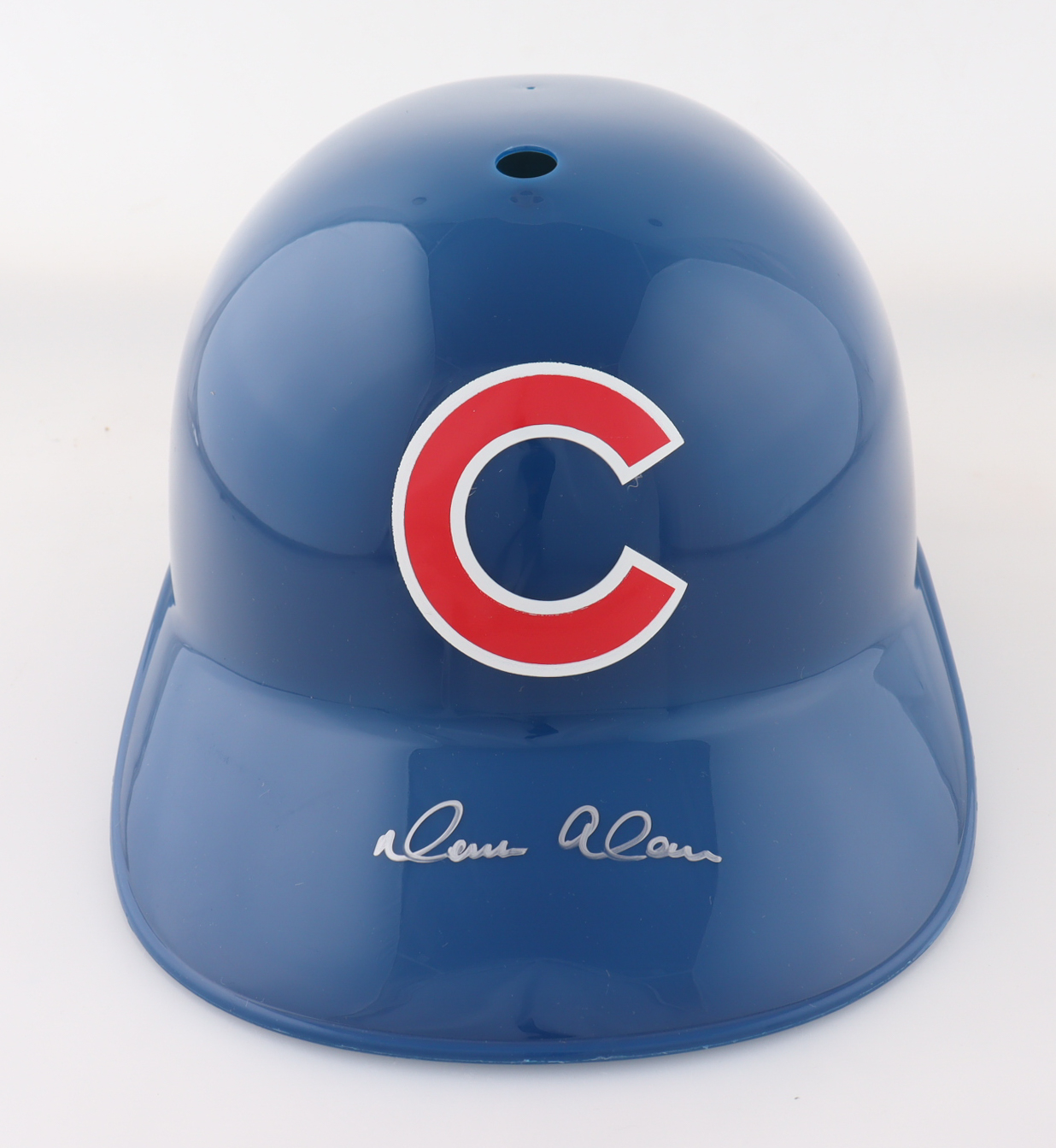 Chicago Cubs Full-Size Plastic Souvenir Replica Batting Helmet. Hand-signed by Moises Alou.