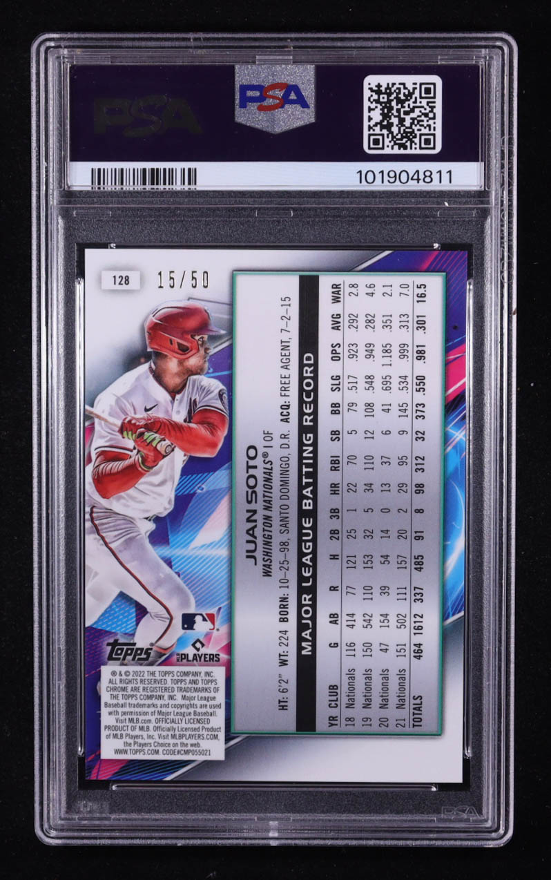 Juan Soto 2022 Topps Cosmic Chrome Gold Interstellar Refractors #128 #15/50 (PSA 10)