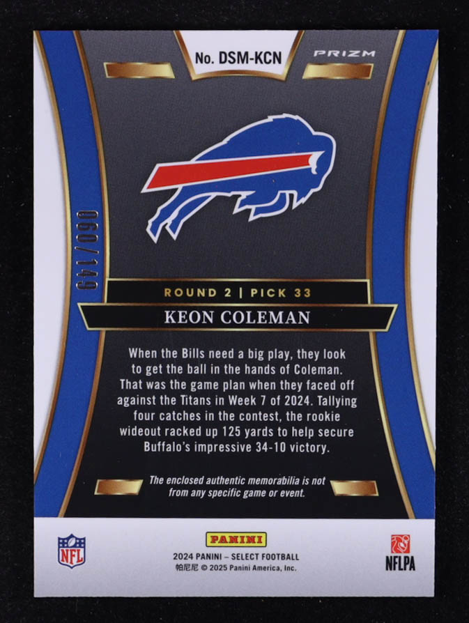 Keon Coleman 2024 Select Draft Selections Memorabilia Prizm #16 #060/149