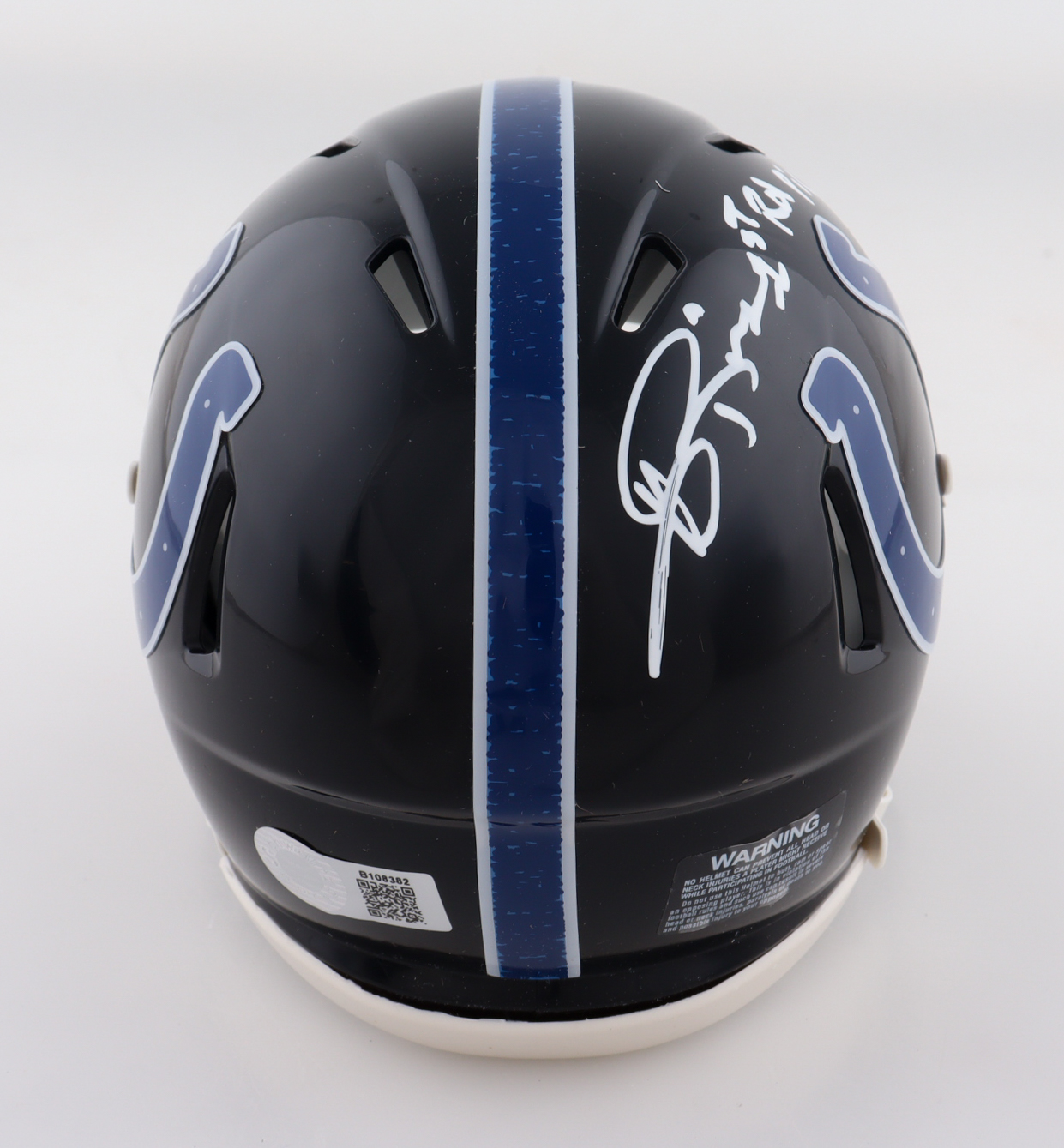 Riddell Indianapolis Colts 2023 Alternate Speed Mini Helmet. Hand-signed and inscribed by Andre Rison.