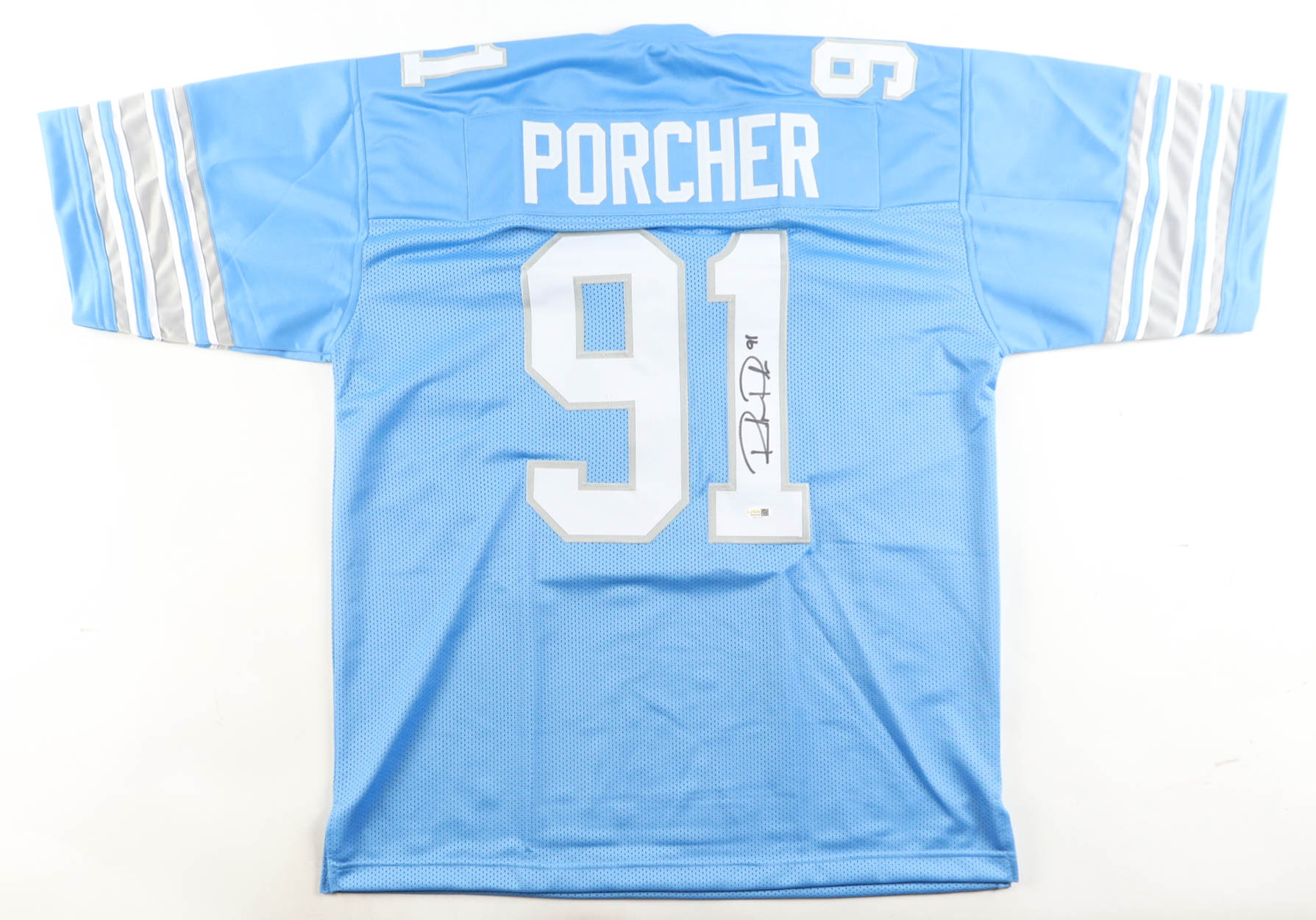 Custom jersey with everything sewn on, size XL. Hand-signed by Robert Porcher.