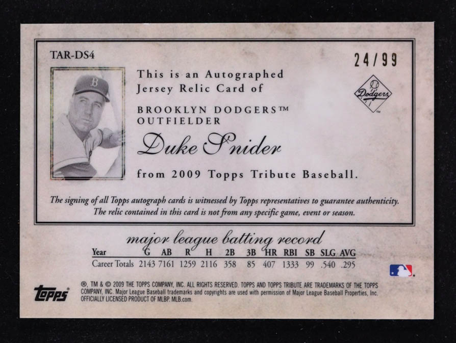 Duke Snider 2009 Topps Tribute Autograph Relics #DS #24/99