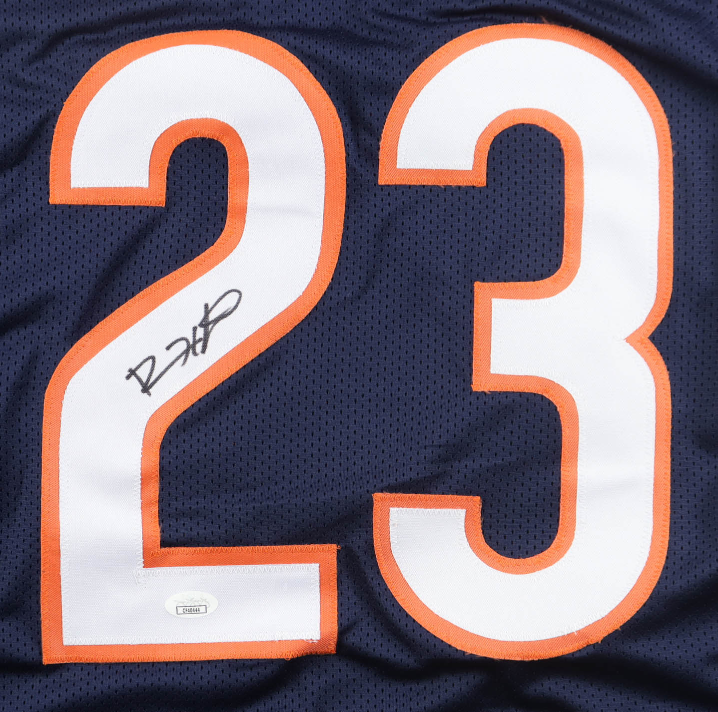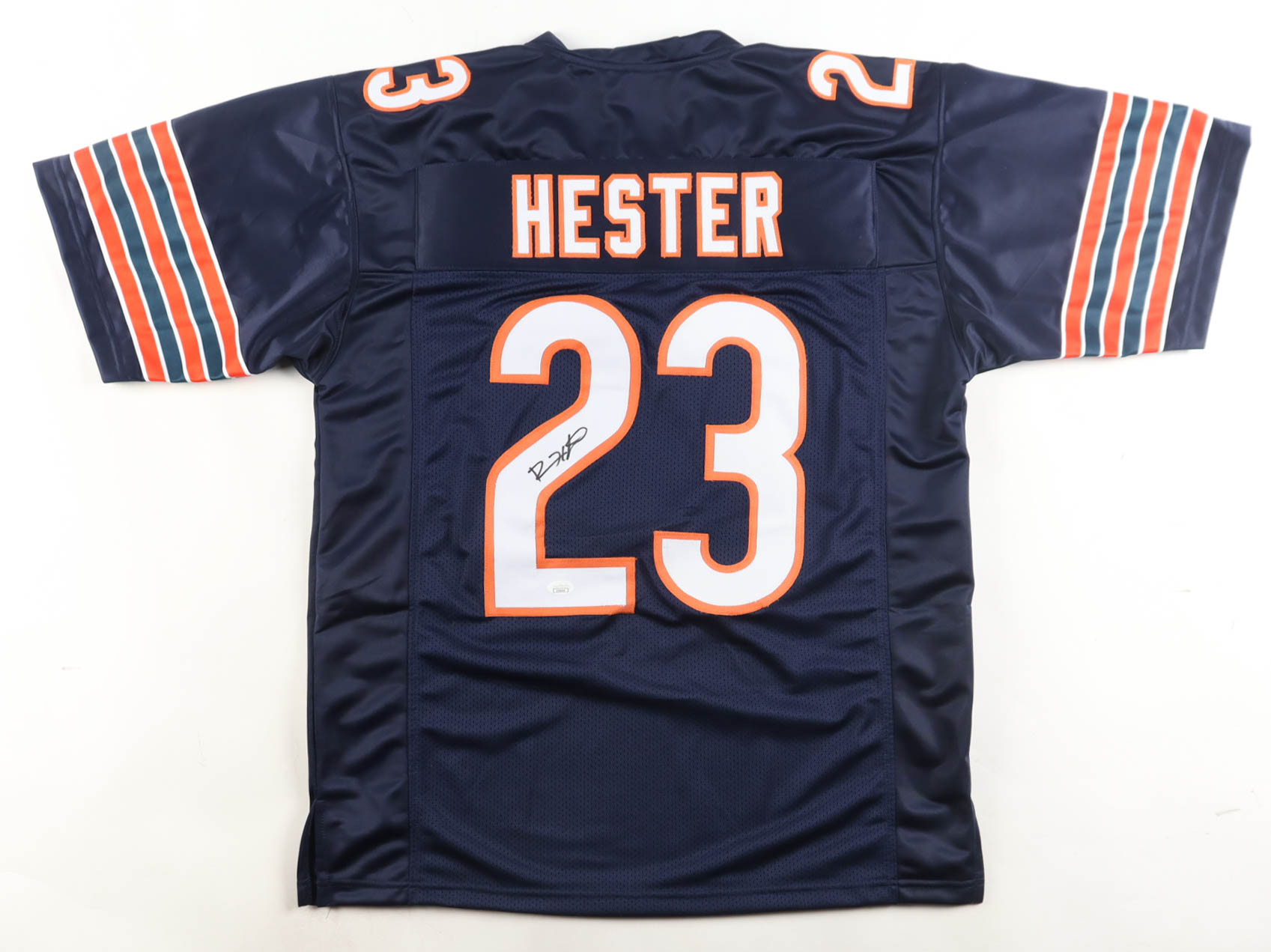 Custom jersey with everything sewn on, size XL. Hand-signed by Devin Hester (HOF).