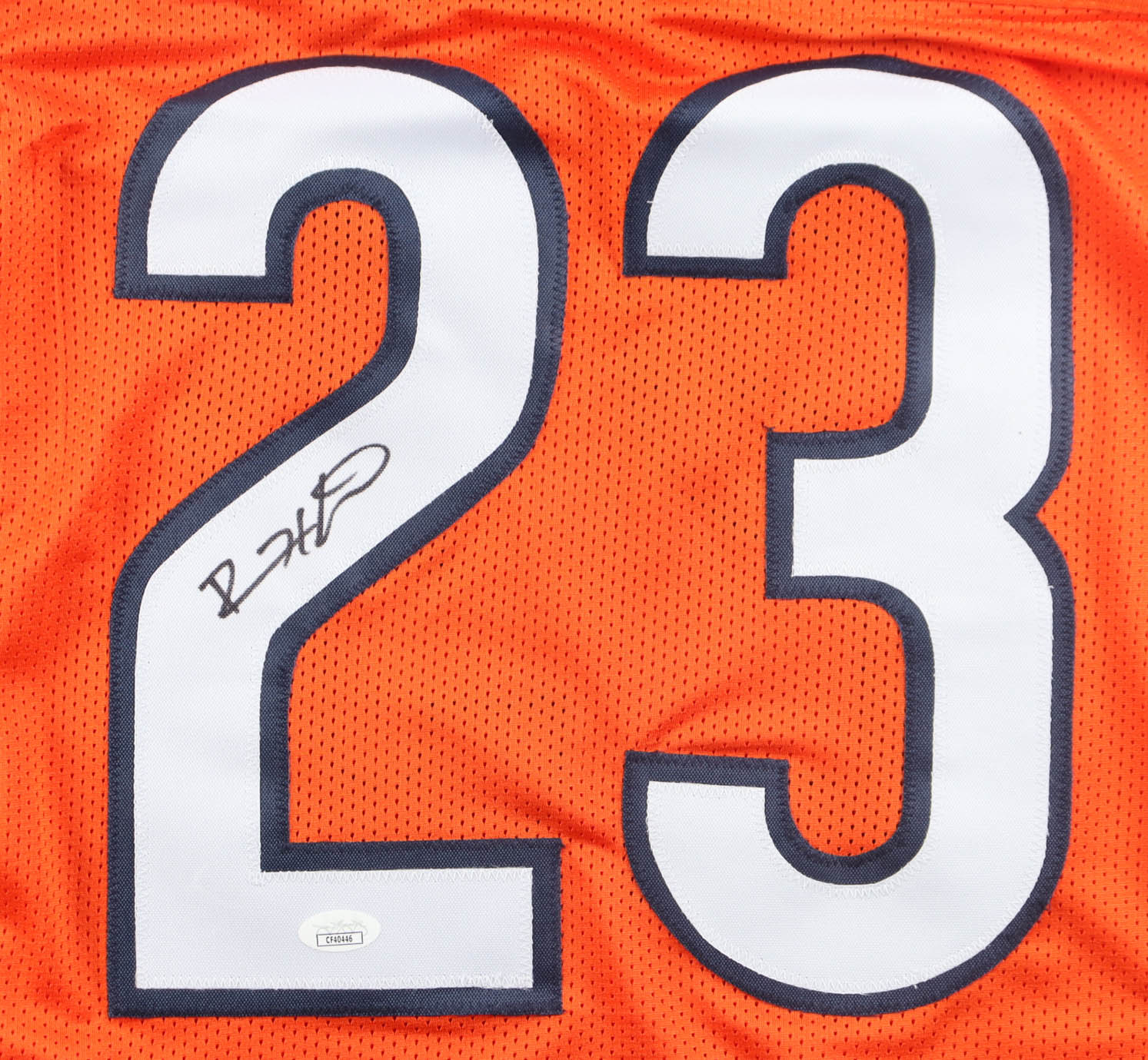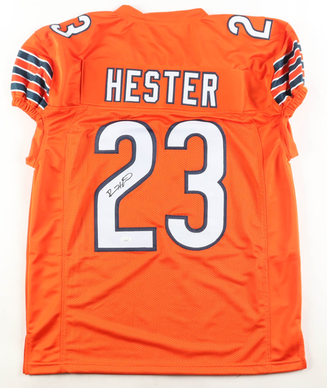 Custom jersey with everything sewn on, size XL. Hand-signed by Devin Hester (HOF).