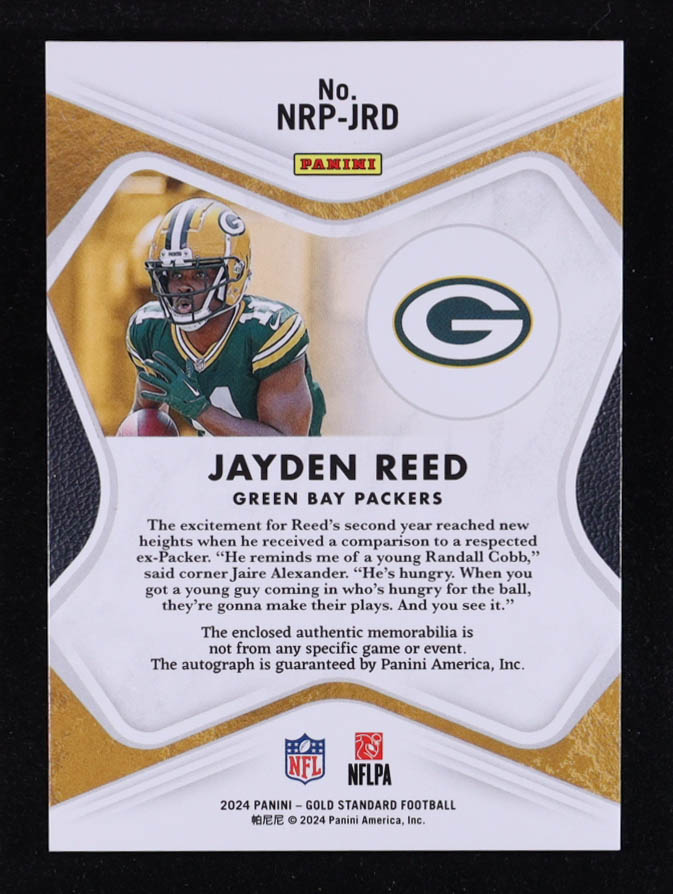 Jayden Reed 2024 Panini Gold Standard Nouveau Riche Patch Autographs Holo Gold #22 #08/15