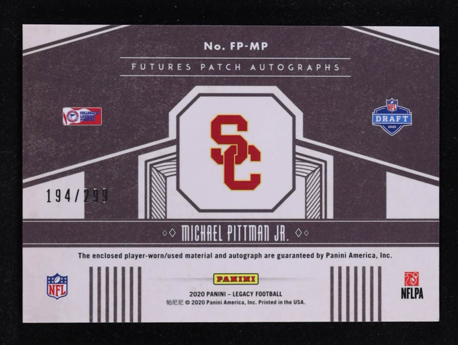 Michael Pittman Jr. 2020 Panini Legacy Futures Patch Autographs Player-Worn #29 #194/299 RC