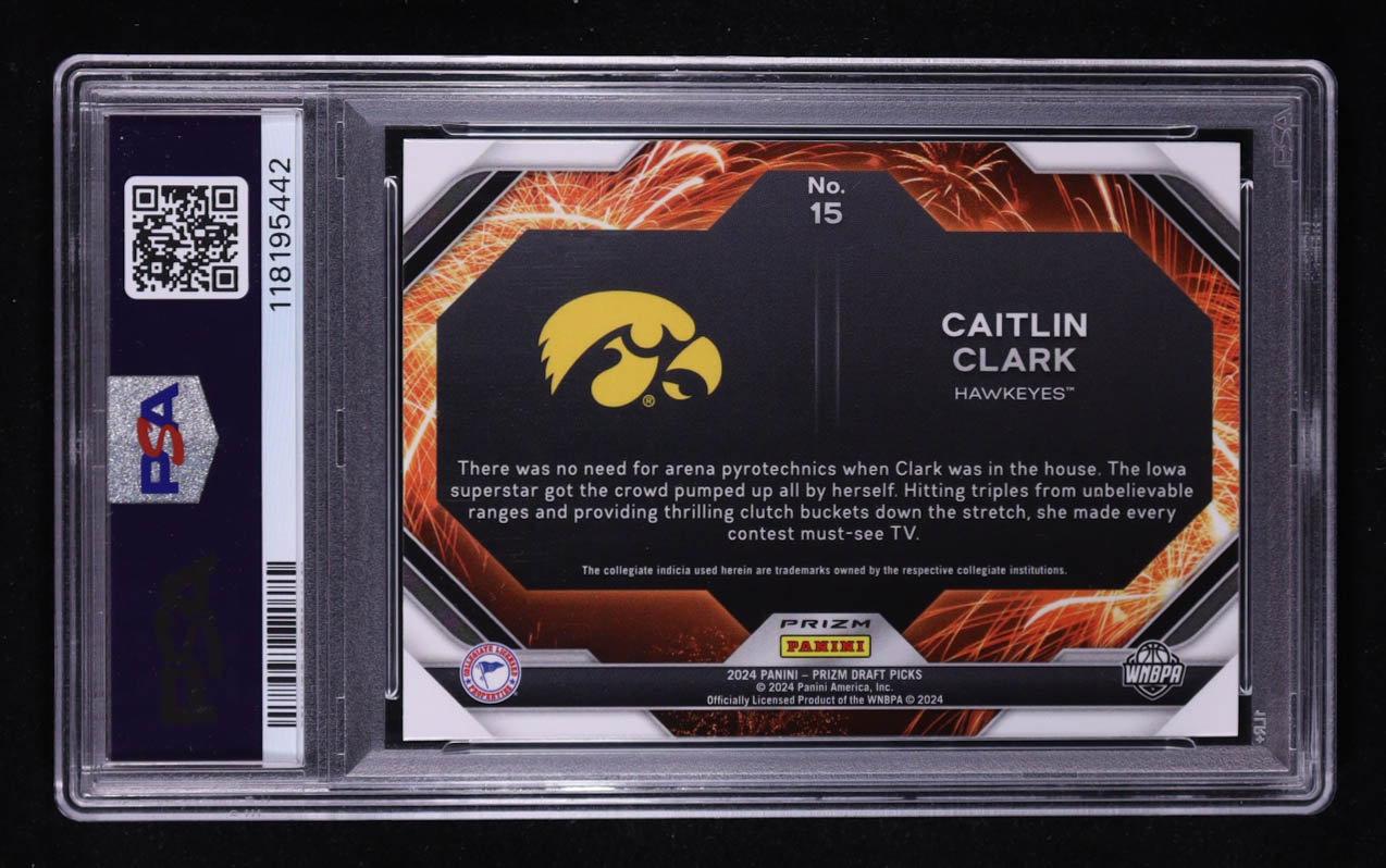 Caitlin Clark 2024-25 Panini Prizm Draft Picks Fireworks Prizms Silver #15 RC (PSA 10)
