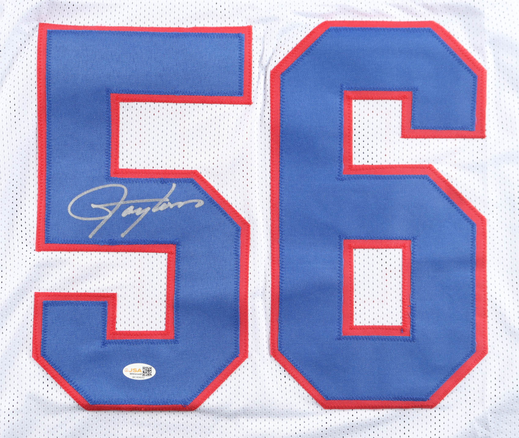 Custom jersey with everything sewn on, size XL. Hand-signed by Lawrence Taylor (HOF).