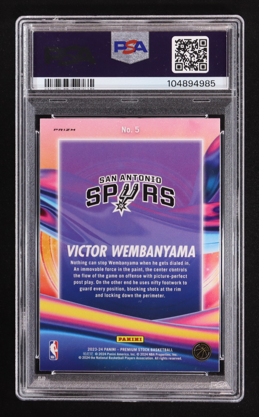 Victor Wembanyama 2023-24 Hoops Premium Stock Anti Gravity Silver Prizm #5 RC (PSA 10)