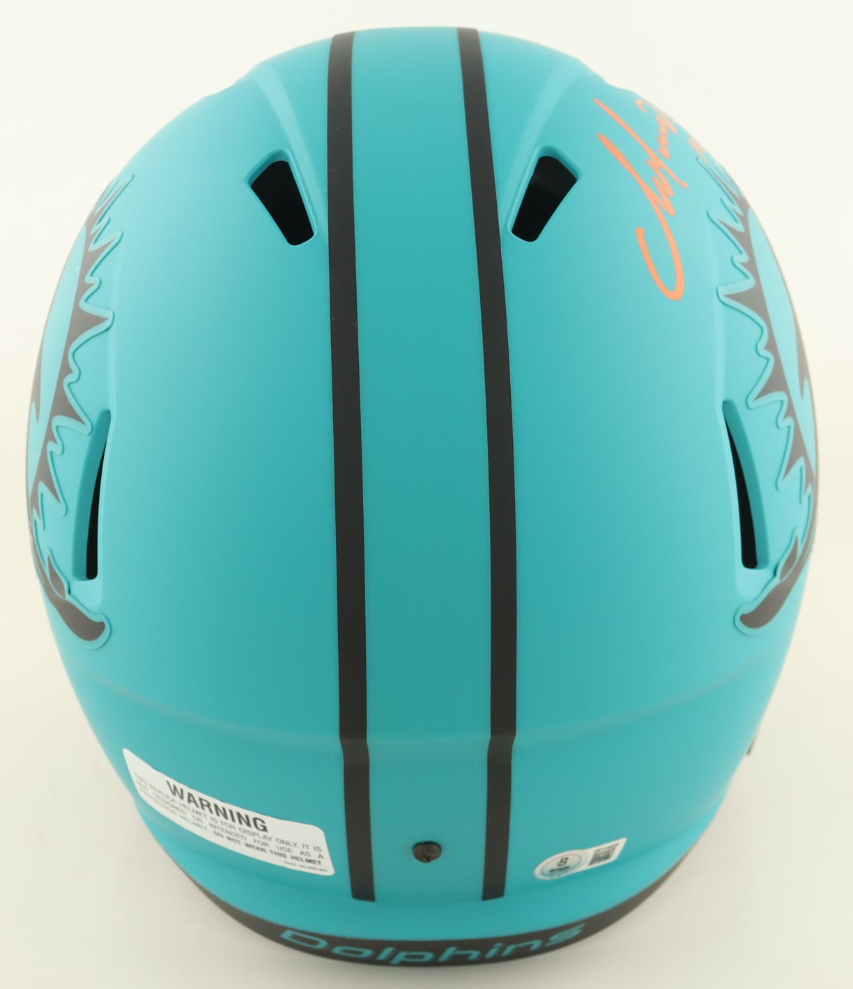 Riddell Miami Dolphins full-size Authentic on field Rave alternate speed helmet. Hand-signed and inscribed by Dan Marino (HOF).