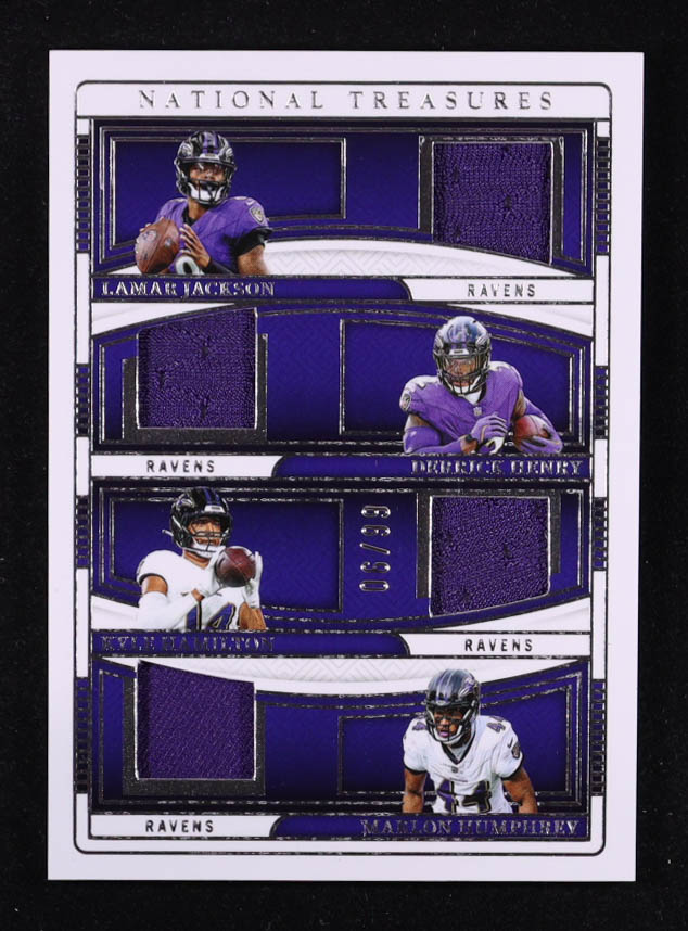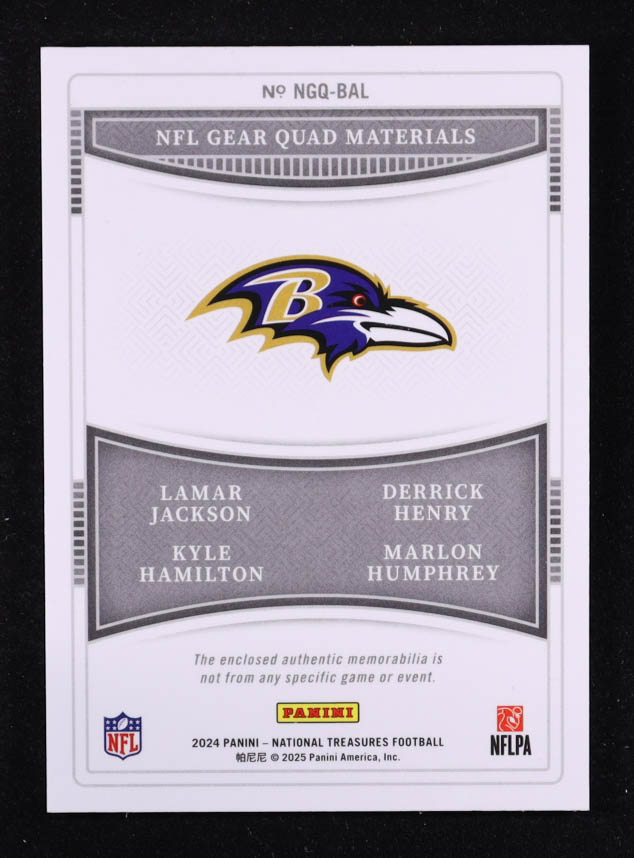 Lamar Jackson / Derrick Henry / Kyle Hamilton / Marlon Humphrey 2024 Panini National Treasures NFL Gear Quad Materials #1 #06/99