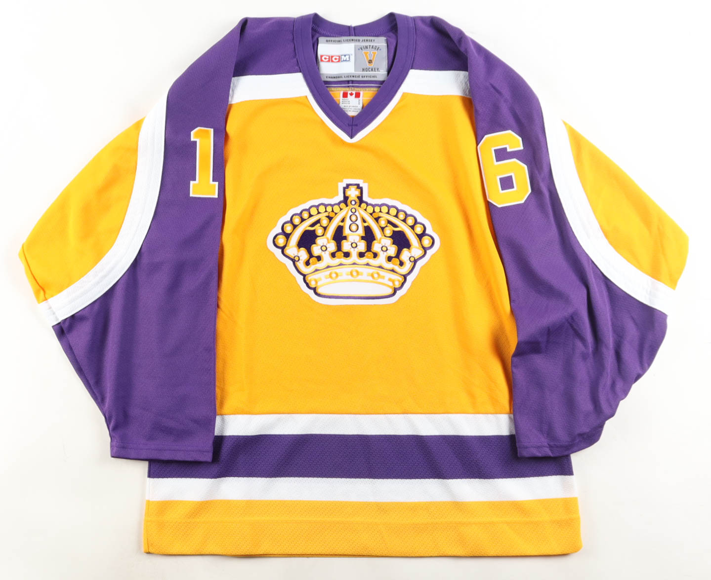 CCM jersey. Everything is sewn on, size XL. Hand-signed by Marcel Dionne (Los Angeles Kings, HOF). Dionne's career highlights have been custom pressed onto the back of the jersey.